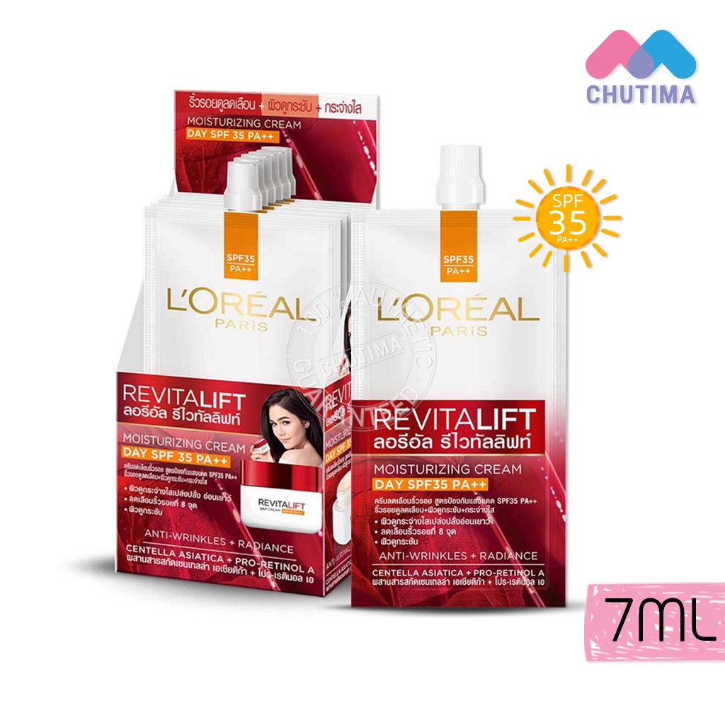 (ขายส่ง ฿34) แบบซอง ลอรีอัล รีไวทัลลิฟท์ เดย์ครีม/ไนท์ครีม L'oreal Revitalift Day Cream/Night Cream 7ml.