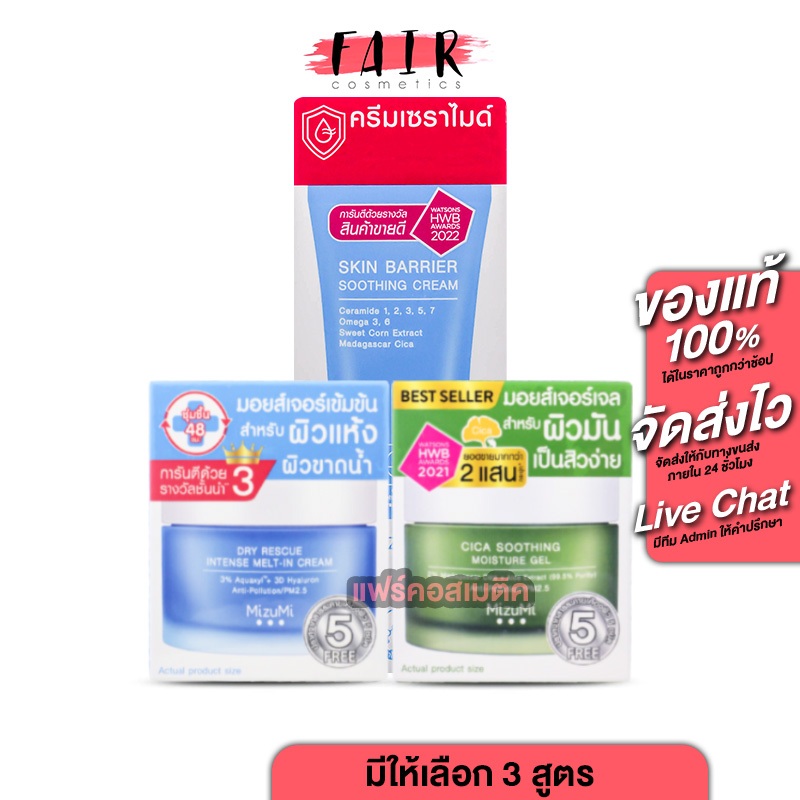 MizuMi Cica Soothing Moisture Gel/Dry Rescue Intense Melt-In Cream/Skin Barrier Soothing Cream มอยเจอร์ไรเซอร์ บำรุงผิว