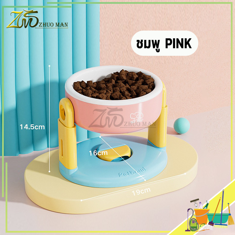 ชามอาหารสัตว์เลี้ยง ที่วางอาหารสุนัข ชามแมว ปรับความสูงได้ ป้องกันคอ การออกแบบถ้วยดูดลื่น วัสดุ PP