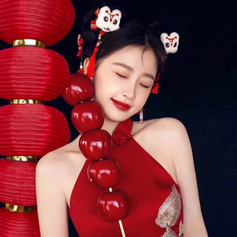 จีนสีแดงสวัสดีปีใหม่กิ๊บคลิปเรียบ ชม. หูฟัง เครื่องประดับผม