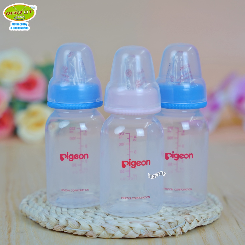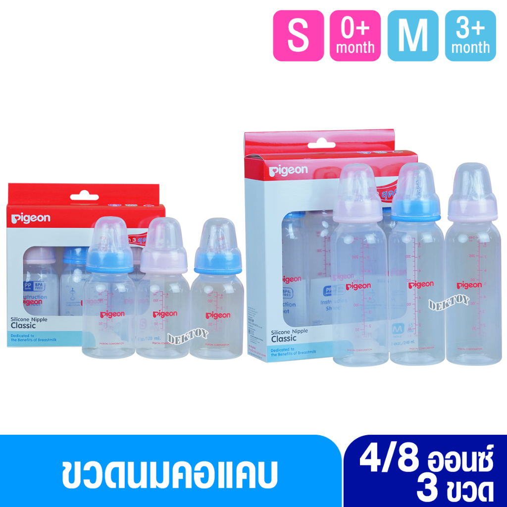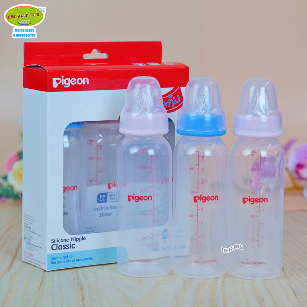 Pigeon พีเจ้น ขวดนมพีเจ้น PP 4และ8 ออนซ์ ไม่พิมพ์ลาย คอมาตรฐาน พร้อมจุกนมคลาสสิค แพ็ค 3 ขวด