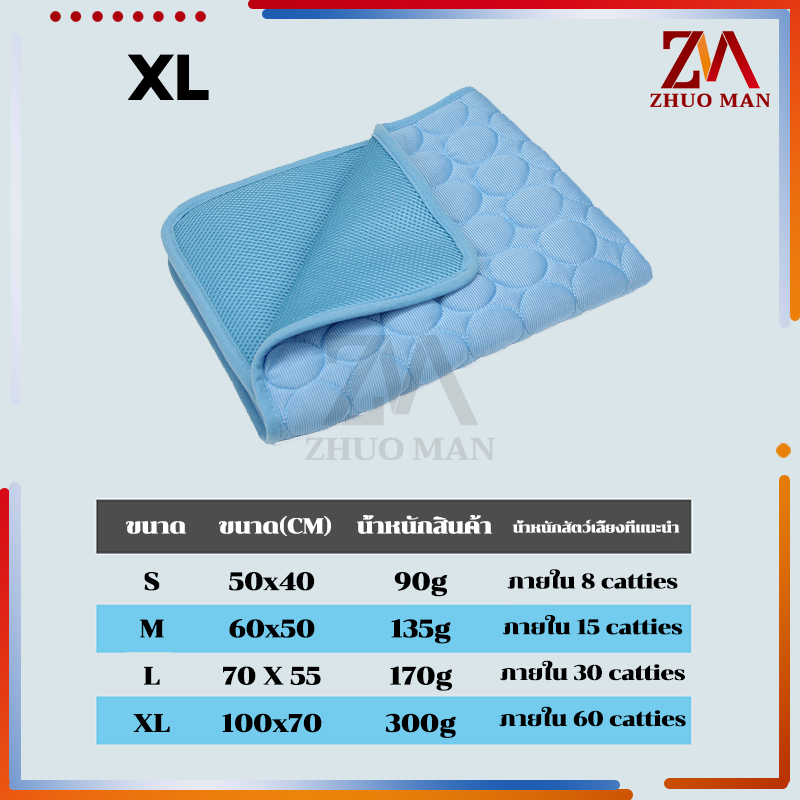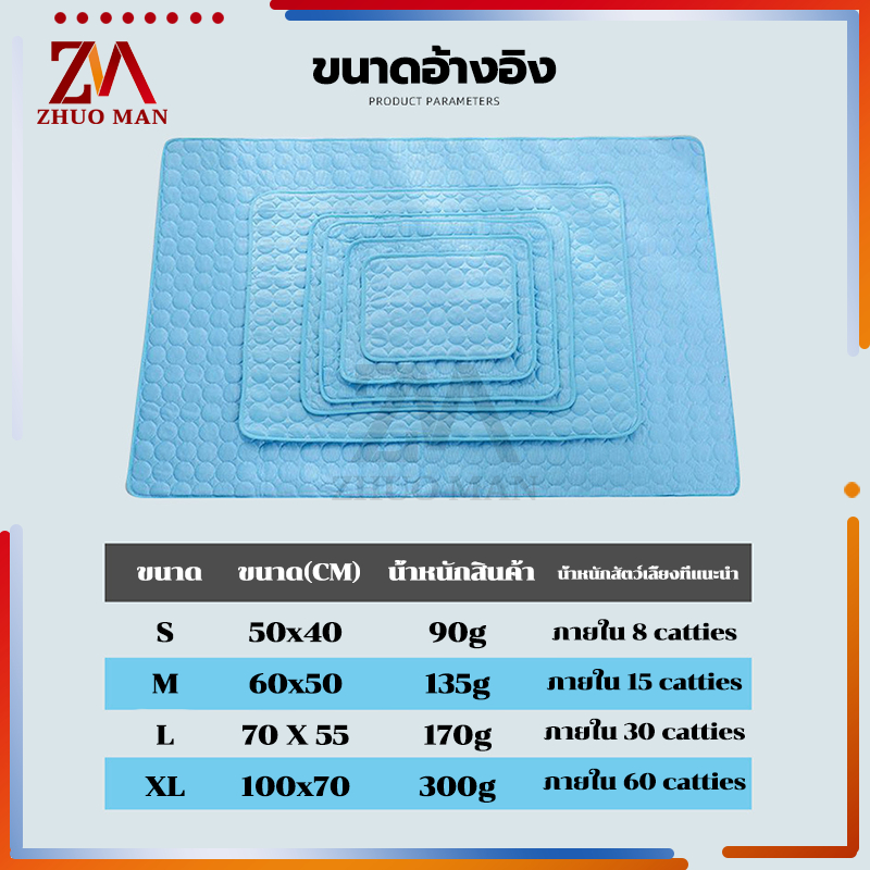 เบาะนอนเย็น เบาะแมว แผ่นเย็นสุนัข แผ่นทำความเย็นสัตว์เลี้ยง ผ้าไหมน้ำแข็งเย็น สบาย มีให้เลือก 4 ขนาด