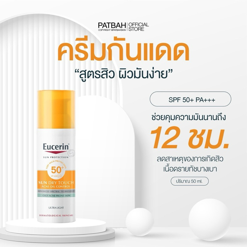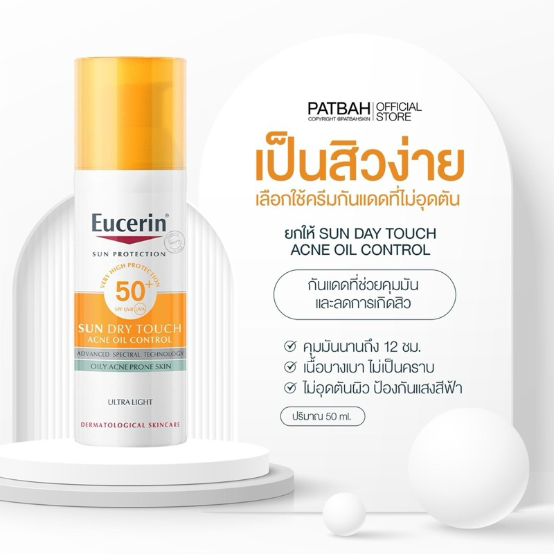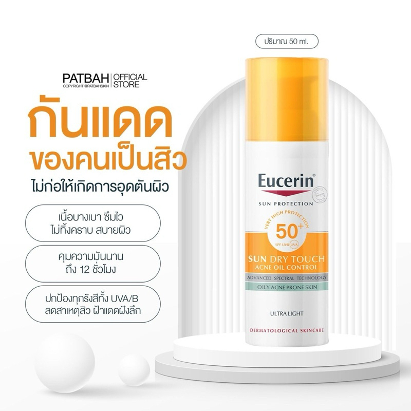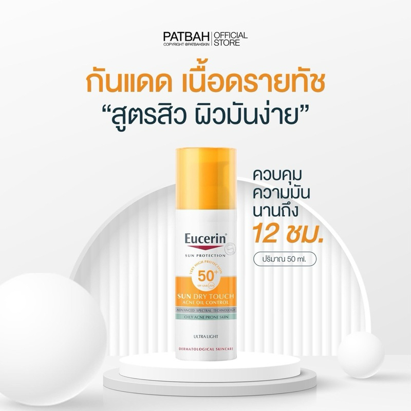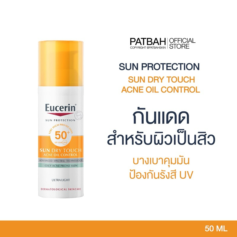 Eucerin SUN DRY TOUCH ACNE OIL CONTROL SPF50+ PA++++ 50 ML กันแดดสูตรสิว กันแดดคุมมัน เนื้อบางเบา สำหรับผิวหน้า
