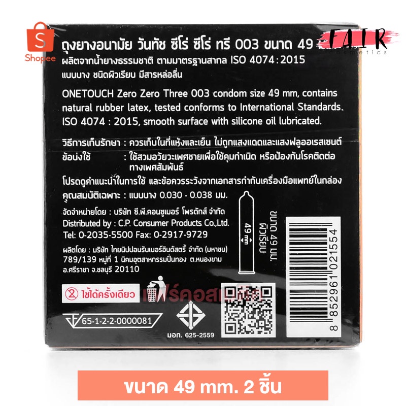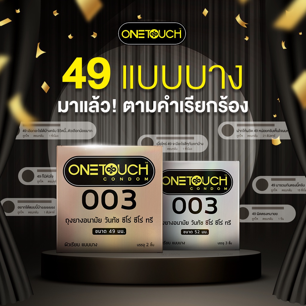 ถุงยางอนามัย One Touch 003 49mm. วันทัช 49มม. [2 ชิ้น] แบบบาง ผิวเรียบ
