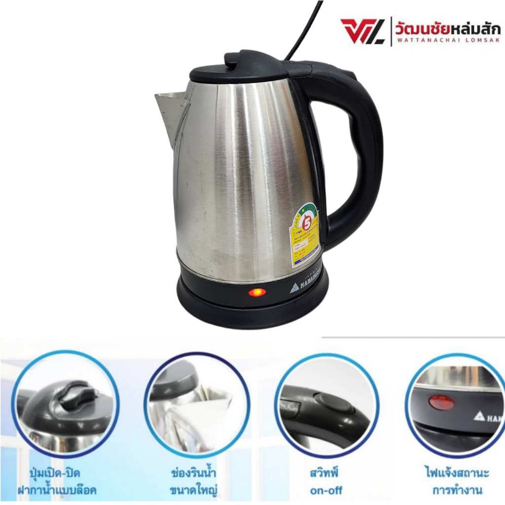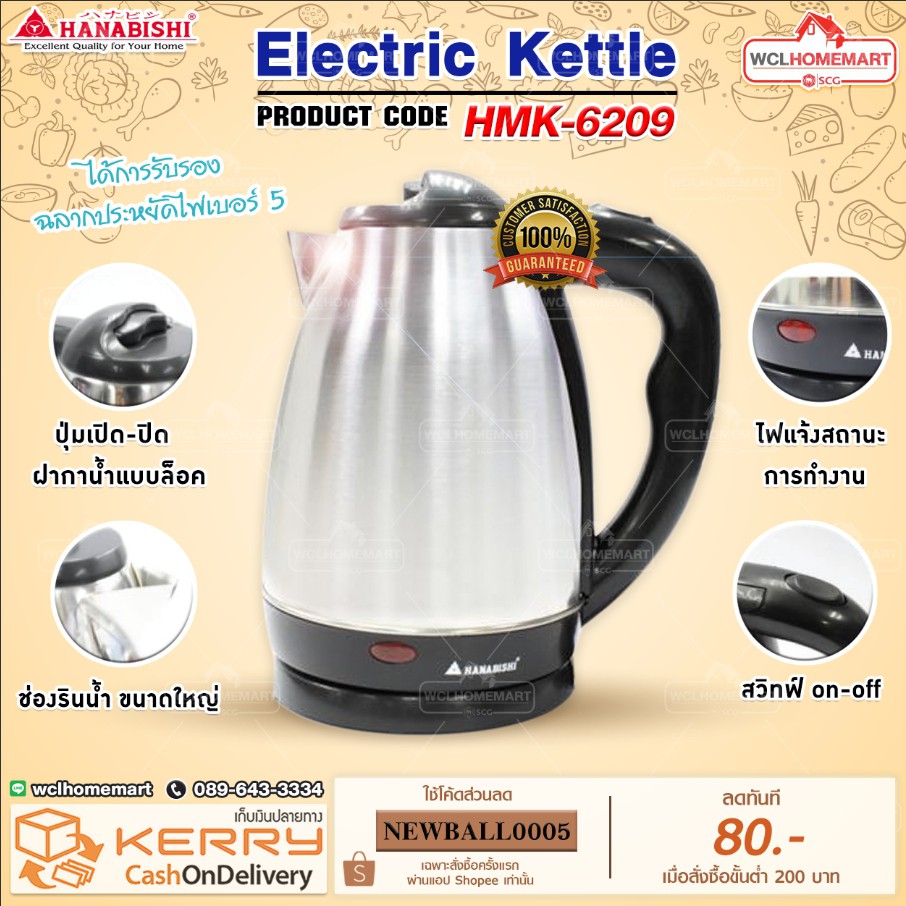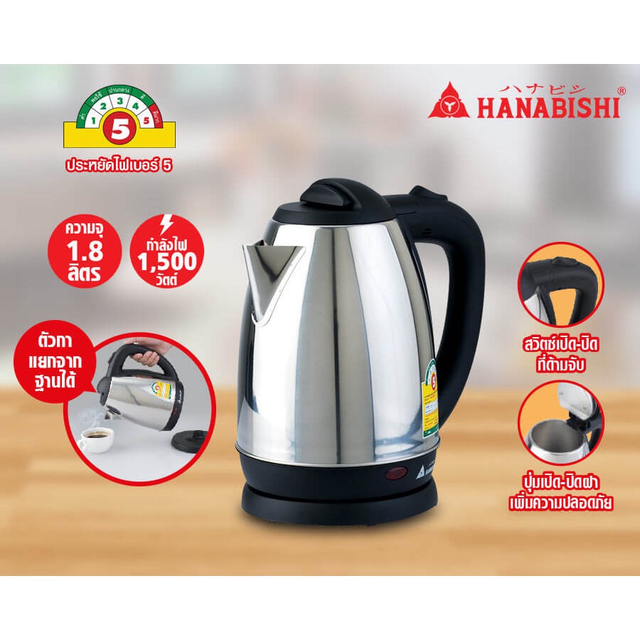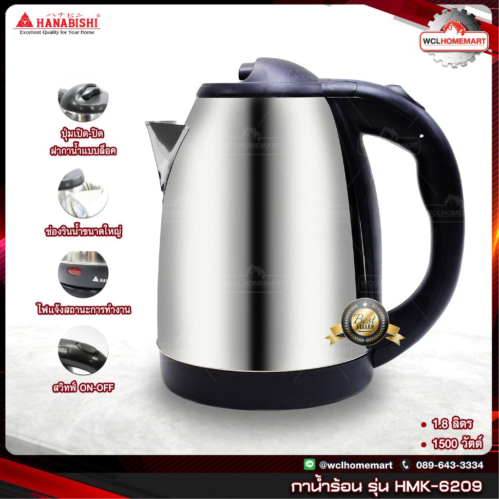 HANABISHI กาน้ำร้อน 1.8 ลิตร รุ่น HMK-6209 (สีเงิน)