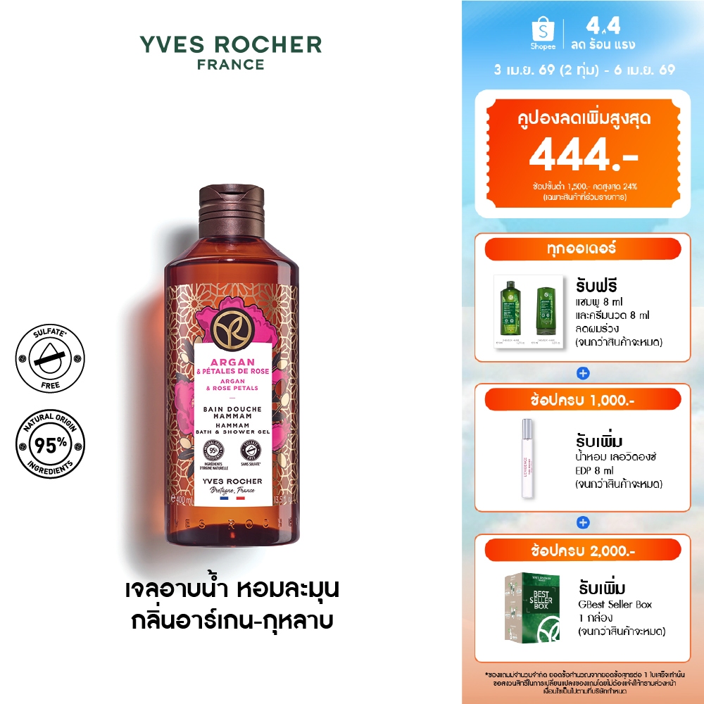 อีฟ โรเช Yves Rocher Argan&Rose Petals Hammam Bath & Shower Gel 400มล.-เจลอาบน้ำกลิ่นอาร์เกนกุหลาบ อาบหอมฟินบูสผิวนุ่มใส