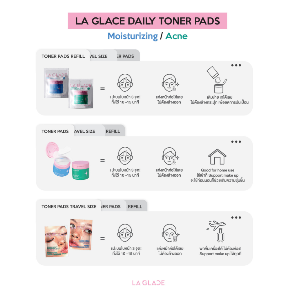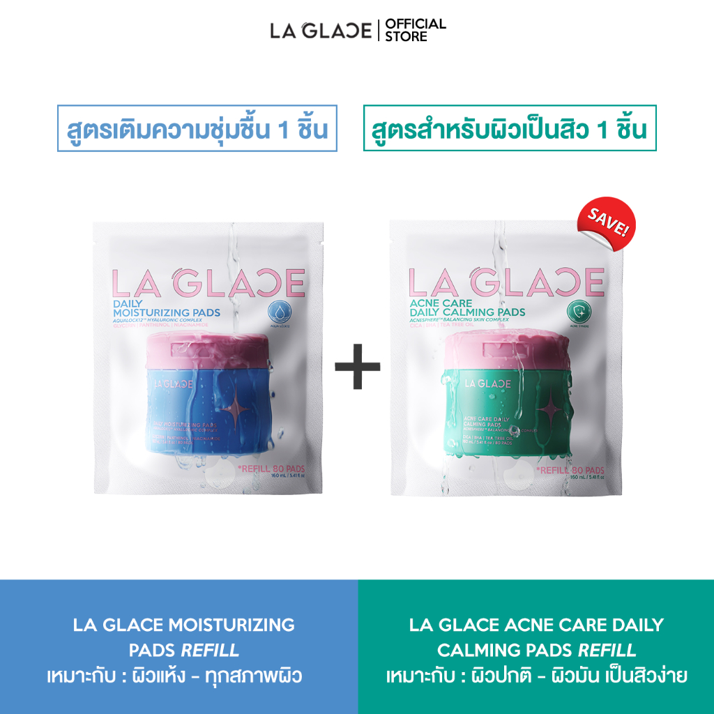 (Refill2ชิ้นราคาพิเศษ)LA GLACE TONER PADS REFILL | โทนเนอร์แพดลากลาสรีฟิล Acne & Moist โทนเนอร์แพด ใช้ได้เช้า&ก่อนนอน