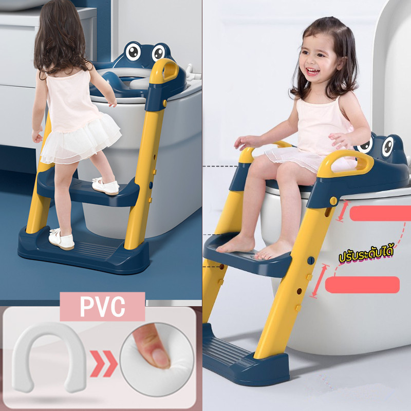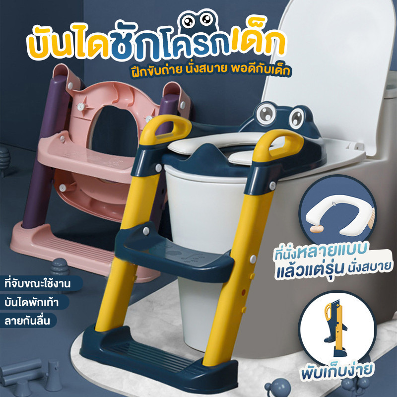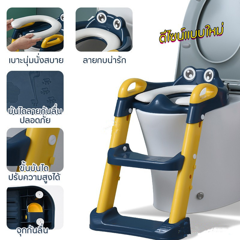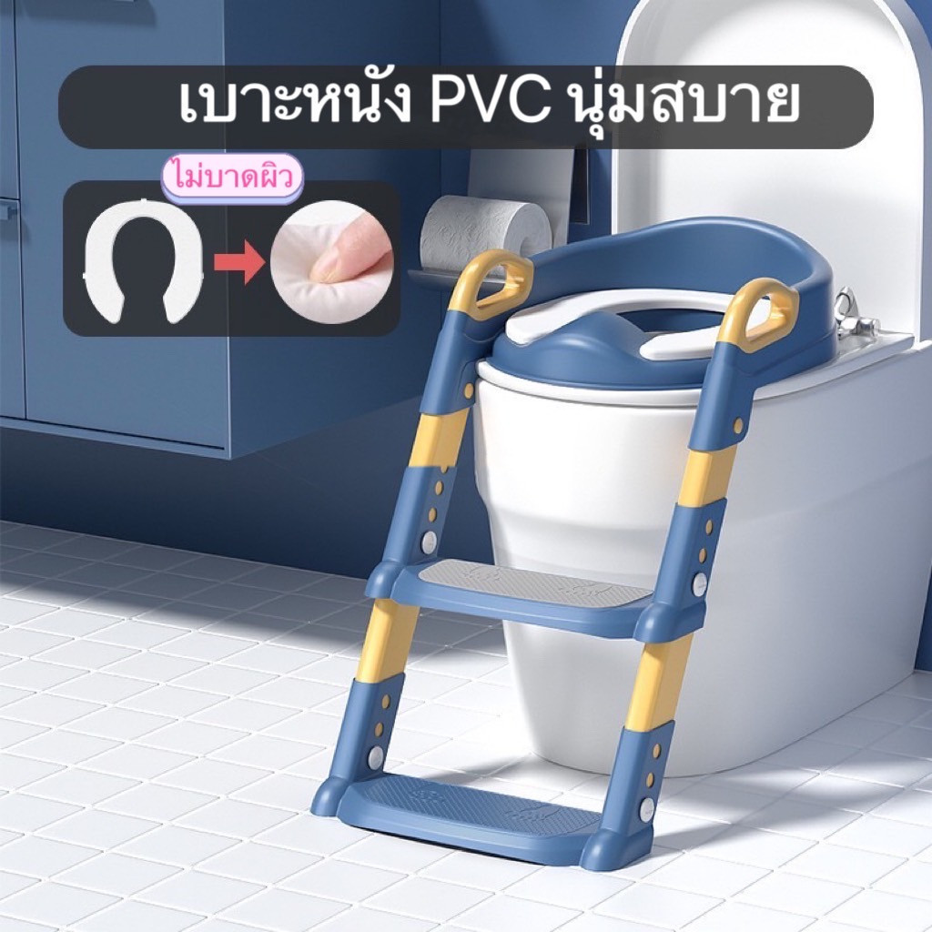 ส่วนลดสูงสุด✨ บันไดชักโครกเด็ก กันลื่น ปรับระดับได ที่รองชักโครกเด็ก เบาะนิ่มPVC กระโถนเด็ก มีบันไดปีนขึ้นและพักเท้าได้