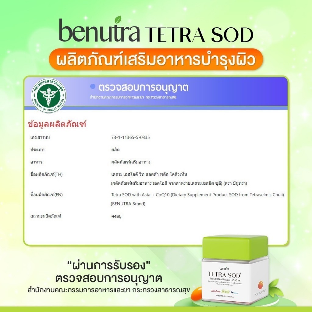 [M/ ในไลฟ์690.- / ของแท้ ] BENUTRA TETRA SOD บีนูทร่า พิโนจินอล