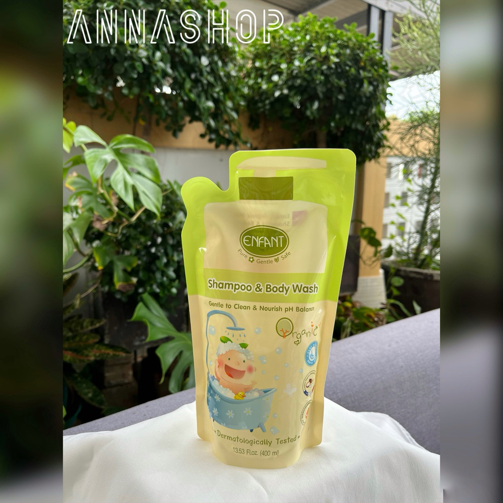 แชมพูและครีมอาบน้ำ ORGANIC SHAMPOO & BODYWASH 1ถุง ชนิดเติม 400ml. ใช้ได้ตั้งแต่แรกเกิด