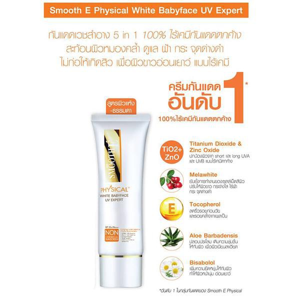 🍓เป๊ะปังจ้า🍓Smooth E Physical Sunscreen SPF50 กันแดดสมูทอี มีขนาด15กรัม,40กรัม(สีเบจ,สีขาว)