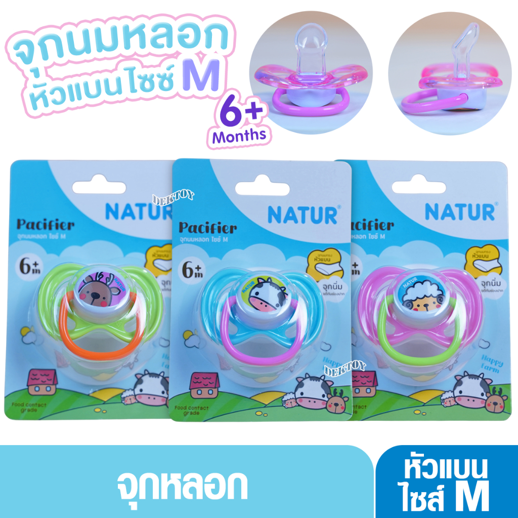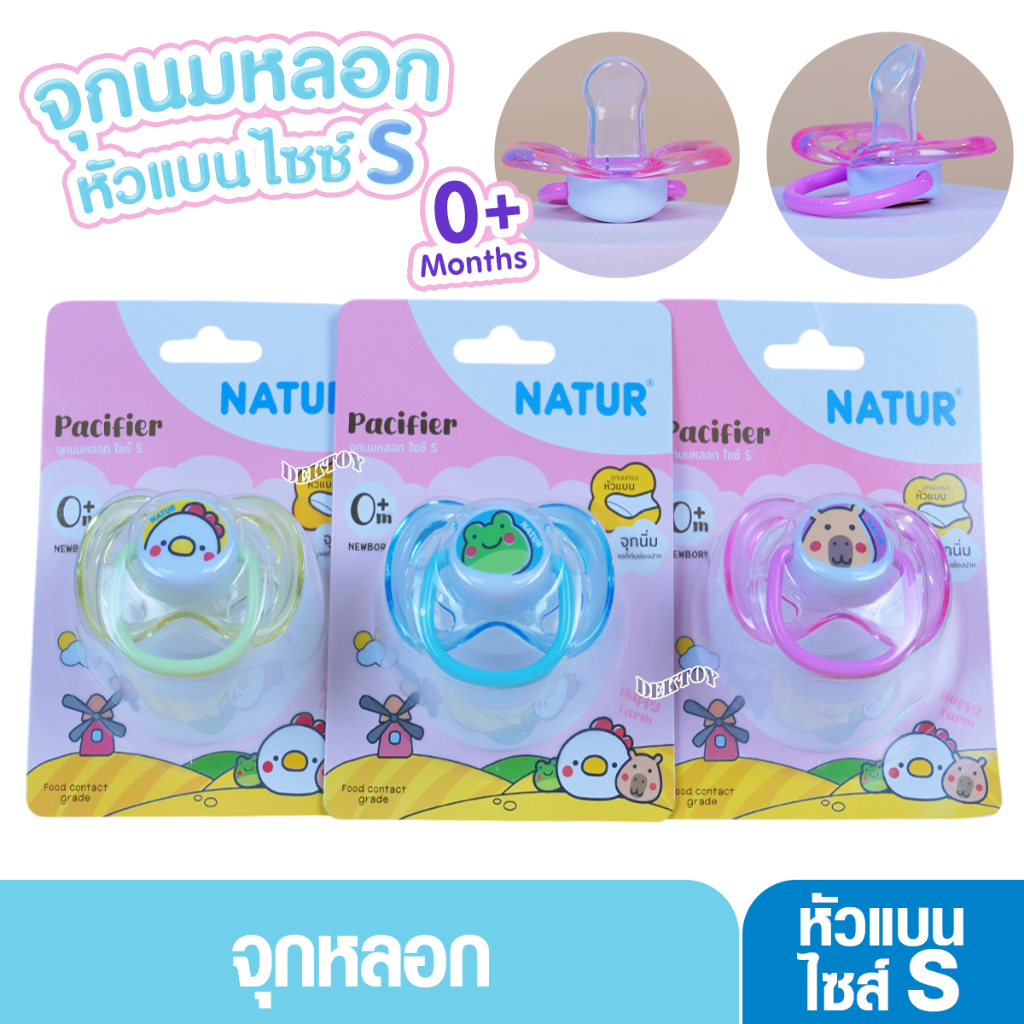 Natur เนเจอร์ จุกหลอกหัวแบนพร้อมฝาครอบไซส์ S แรกเกิดขึ้นไป และ 6เดือนขึ้นไป