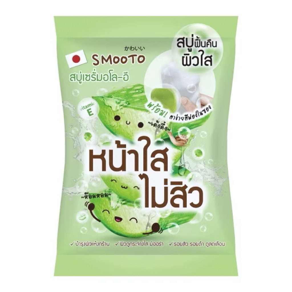 (1 ก้อน) สบู่ สมูทโตะ ว่าน มะเขือเทศ smooto Serum Soap Aloe-E Acne White Serum/Colagen Whitening Serum Soap