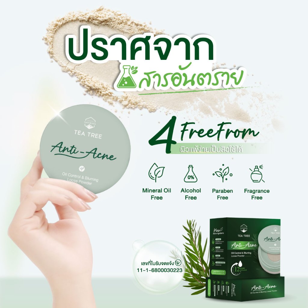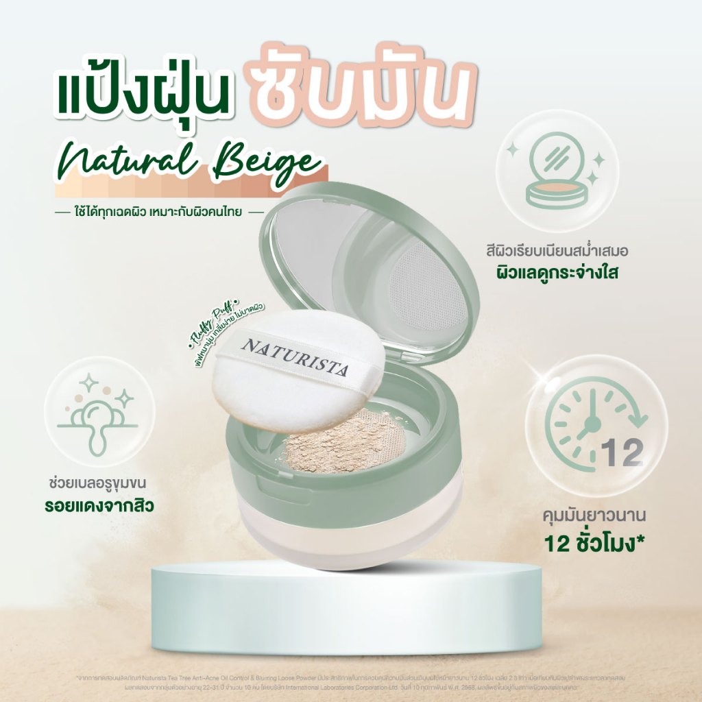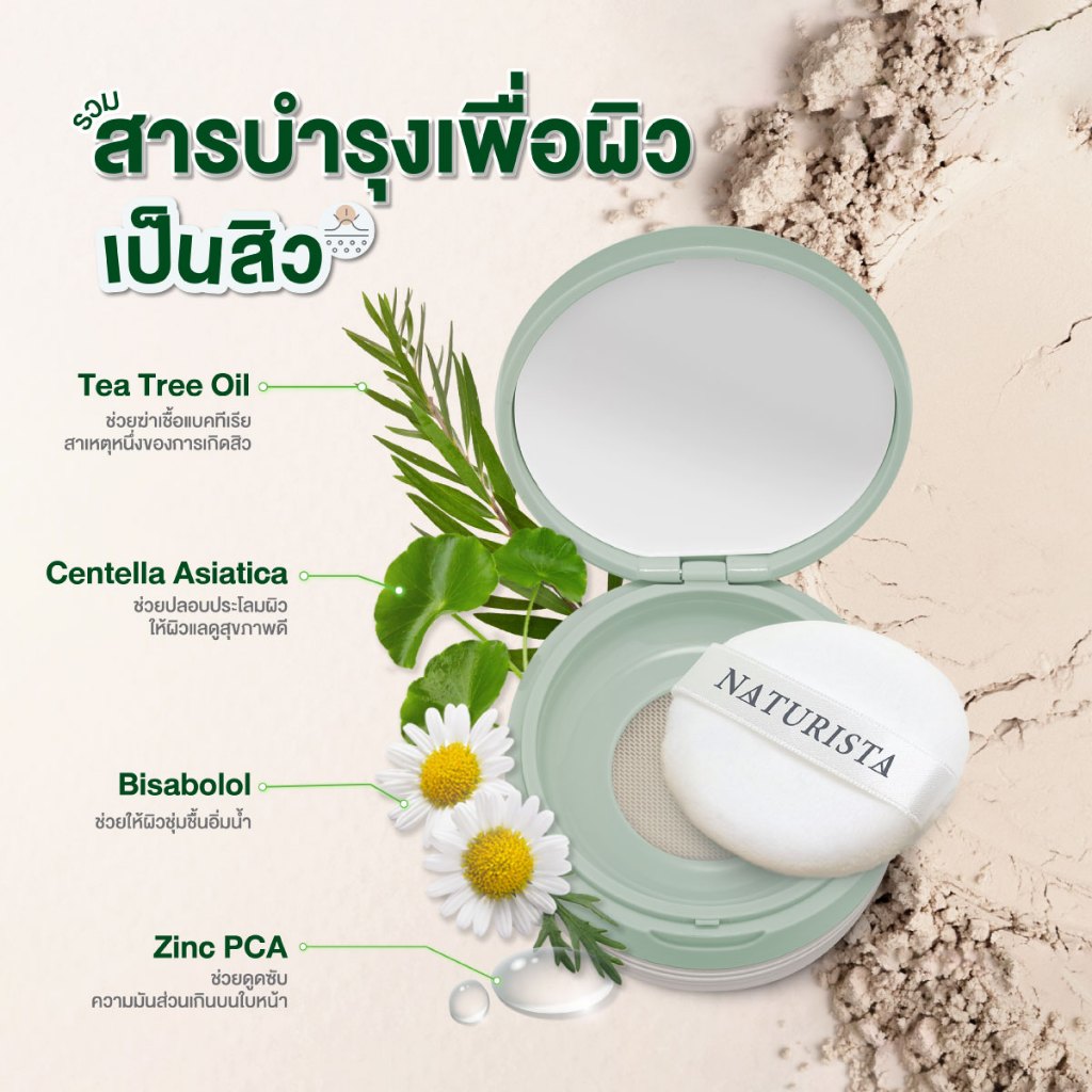 Naturista แป้งฝุ่น ฟิลเตอร์ คุมมัน สำหรับผิวเป็นสิวง่าย Tea Tree Oil Control & Blurring Loose Powder 10g.