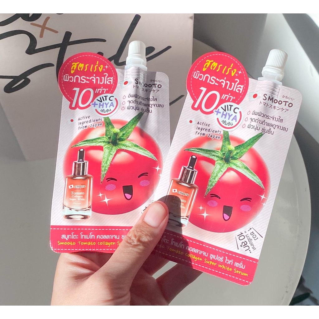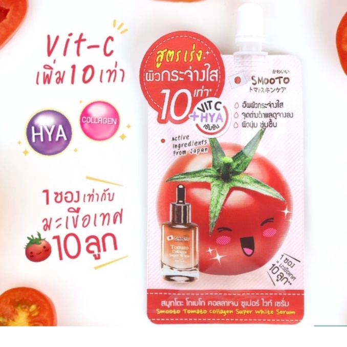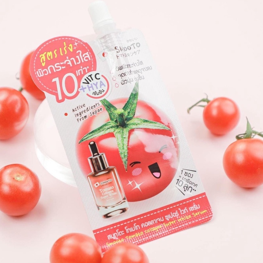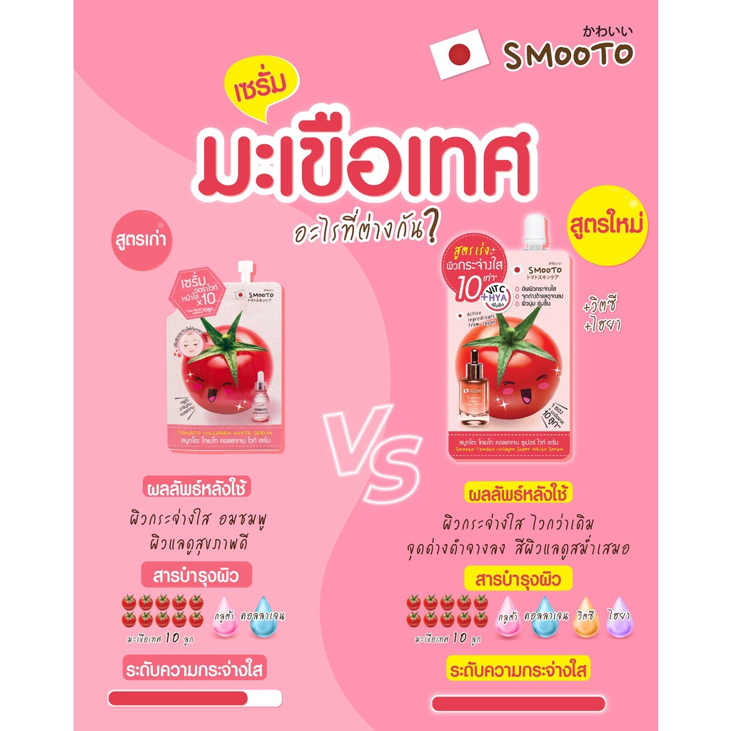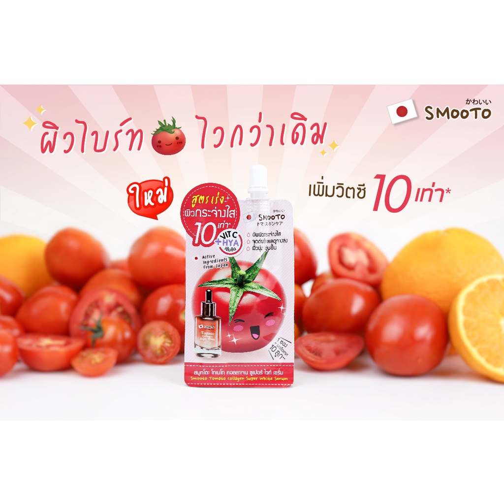 (6ซอง/กล่อง) Smooto สมูทโตะ โทเมโท คอลลาเจน ซุปเปอร์ ไวท์ เซรั่ม [3406] x10 เท่า วิตซี+ไฮยา เข้มขัน