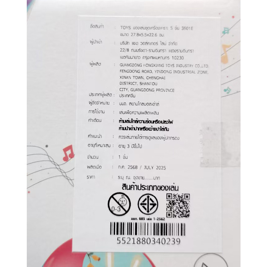 GlobalHouse TOYS ของเล่นชุดเครื่องเคราะ 5 ชิ้น 3601E ขนาด 27.8x5.5x22.6 ซม. คละสี