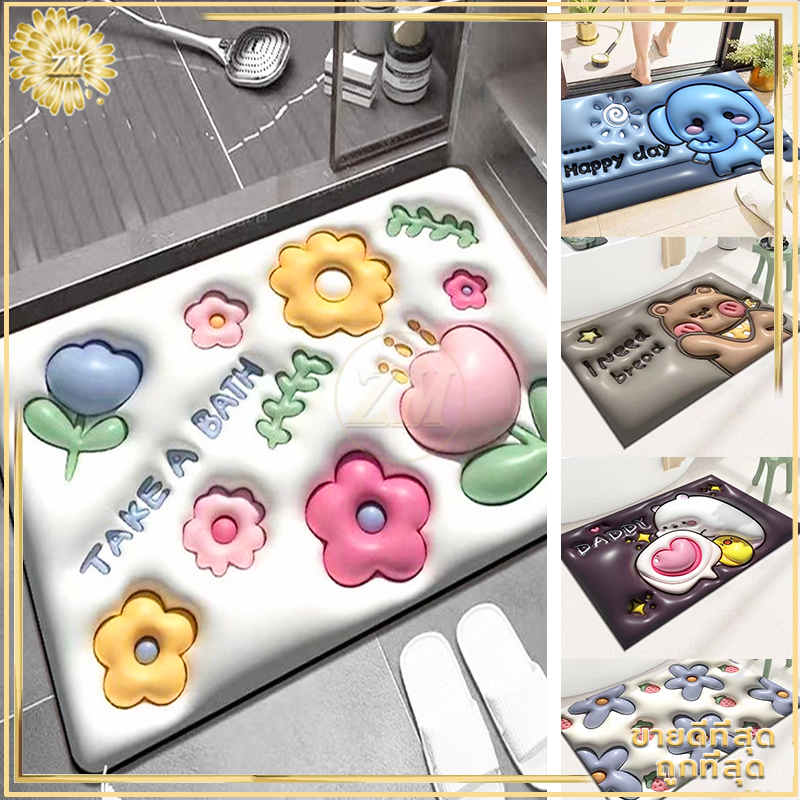 พรมเช็ดเท้า 3D พรมขนสั้น ผ้าเช็ดเท้า พรมกันลื่น สำหรับห้องน้ำ เช็ดเท้า/ห้องครัว เนื้อนิ่ม ดูดซับน้ำได้ดี 40*60CM