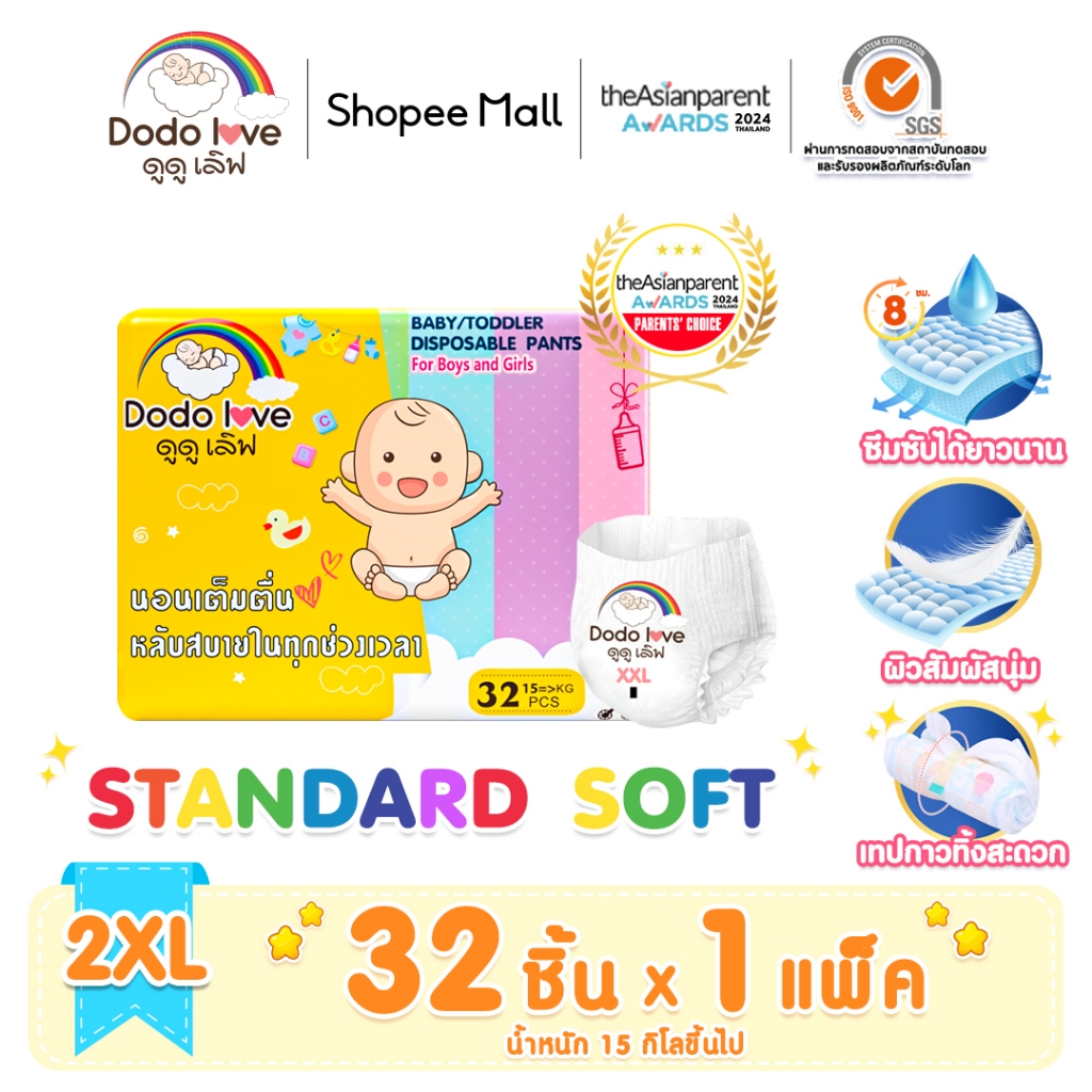 แพ็คเดี่ยว ไซส์ 2XL DODOLOVE Standard Soft กางเกงผ้าอ้อม ผ้าอ้อมสำเร็จรูป นุ่ม บางเบา ใส่สบาย มีโลเทปม้วนทิ้ง