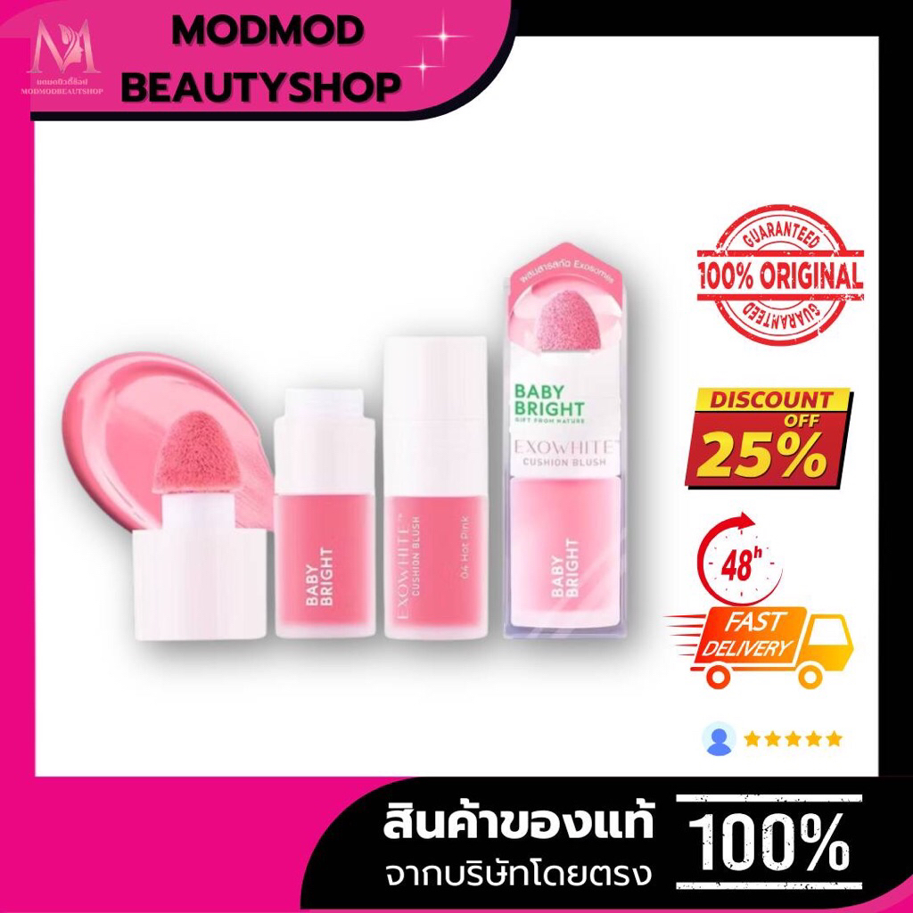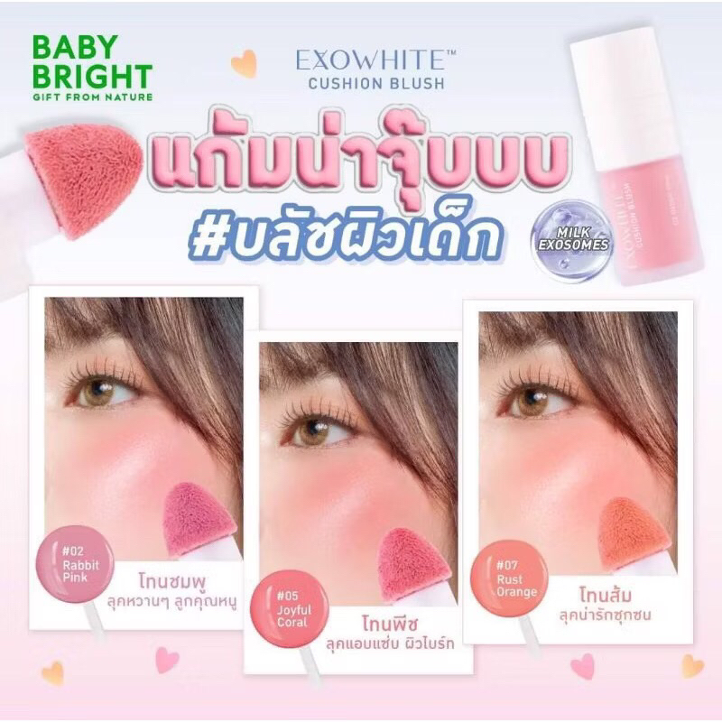 Baby Bright Exowhite Cushion Blush 4ml. เบบี้ไบร์ท เอ็กซ์โซโวท์คุชชั่นบลัช กันน้ำ กันเหงื่อ
