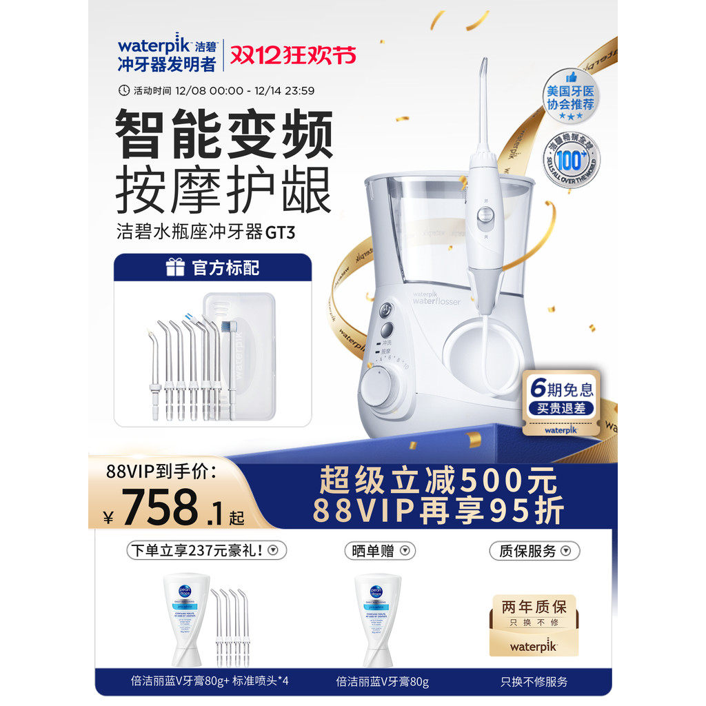 [Taohao Goods] Waterpik Waterpik เครื่องซักผ้าฟันในครัวเรือนเครื่องซักผ้าฟันน้ําไหมขัดฟันช่องปากฟัน Scaler ฟันเครื่องซักผ้าที่วางขวดน้ํา GT3 7LSU * & * &