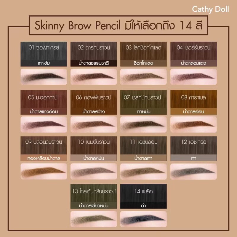 แบรนด์แท้ขายถูกCathy Doll Skinny Brow Pencil 0.05g.เคที่ดอลล์ ดินสอเขียนคิ้ว ออโต้ หัวเล็กเพียง 1.5 mm