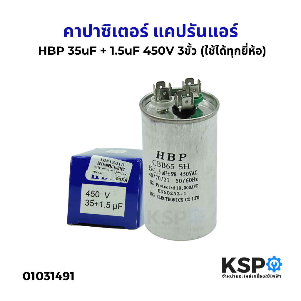 คาปาซิเตอร์ แคปรันแอร์ HBP 30uF, 35uF, 45uF, 50uF+1.5uF, 2uF 450V 3ขั้ว คาปาซิเตอร์แอร์ แคปสตาร์ทแอร์ (ใช้ได้ทุกยี่ห้อ)