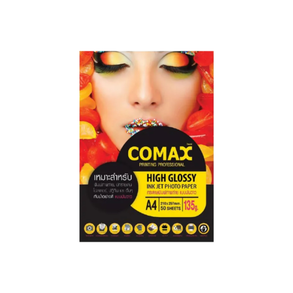 COMAX 135g. (50,100แผ่น) กระดาษ A4 พิมพ์ภาพถ่าย แบบมันวาว กันน้ำ (Photo Inkjet Glossy Paper)