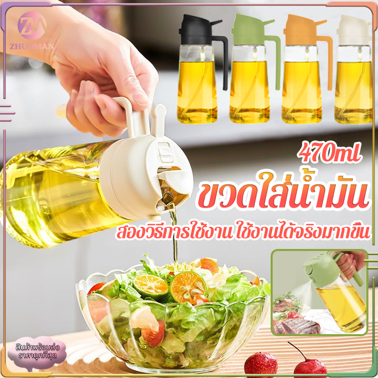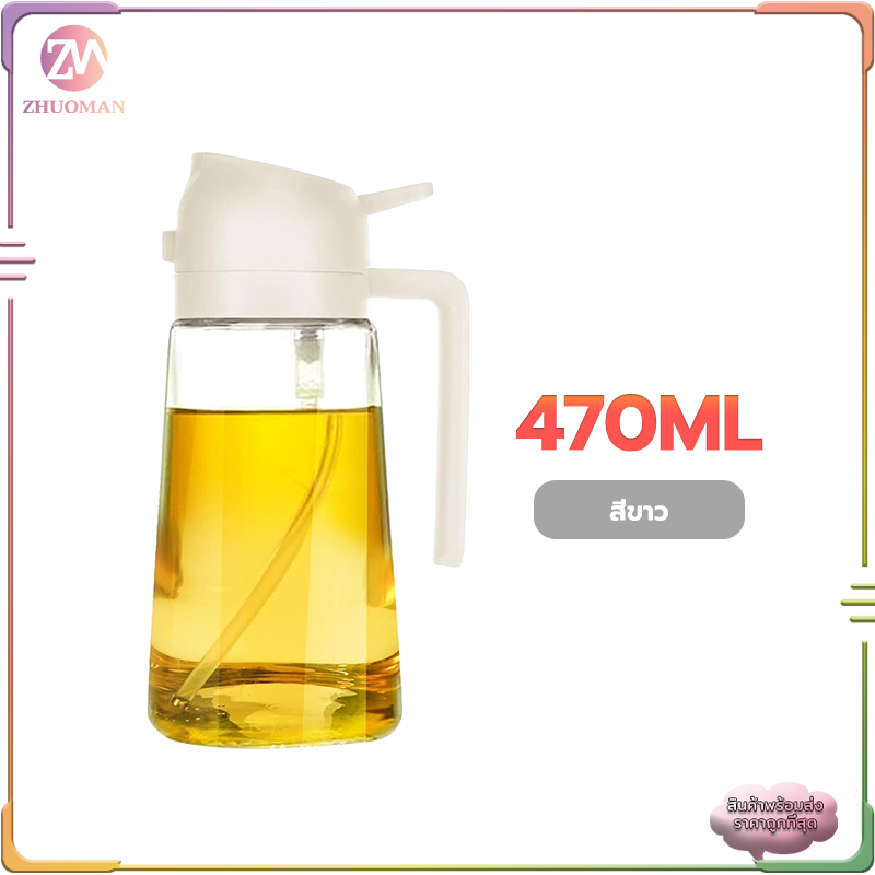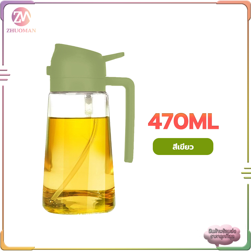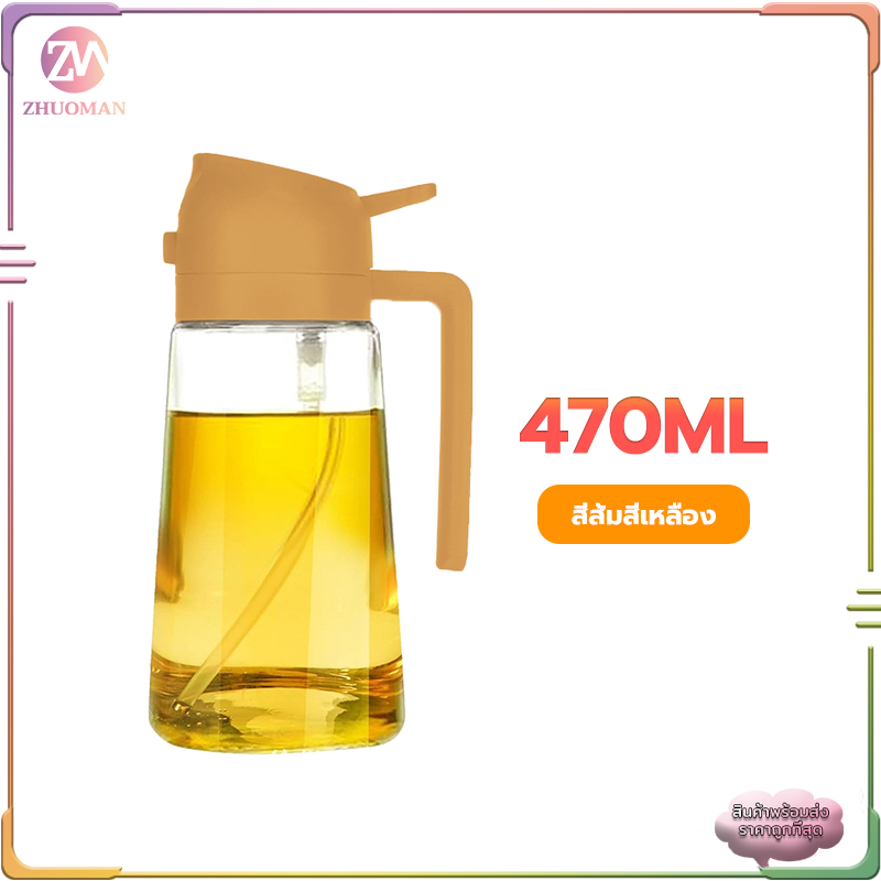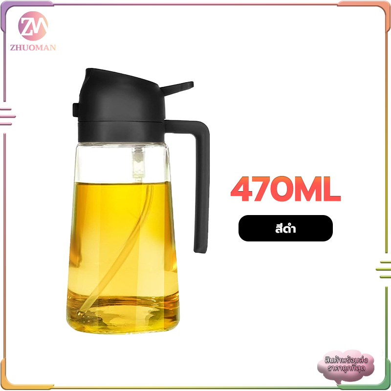 ขวดสเปรย์แก้วใส่น้ำมัน ขวดสำหรับใส่น้ำมัน470MLกันรั่ว ใช้งานได้ 2 ฟังก์ชั่น ฝาเปิดปิดอัตโนมัติ ขวดจ่ายน้ำมัน น้ำส้มสายชู