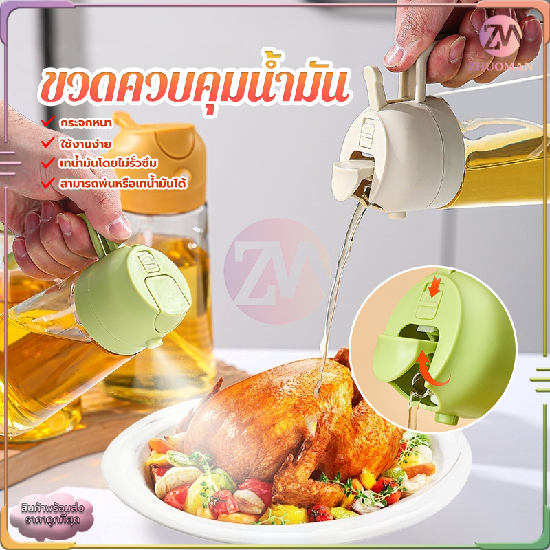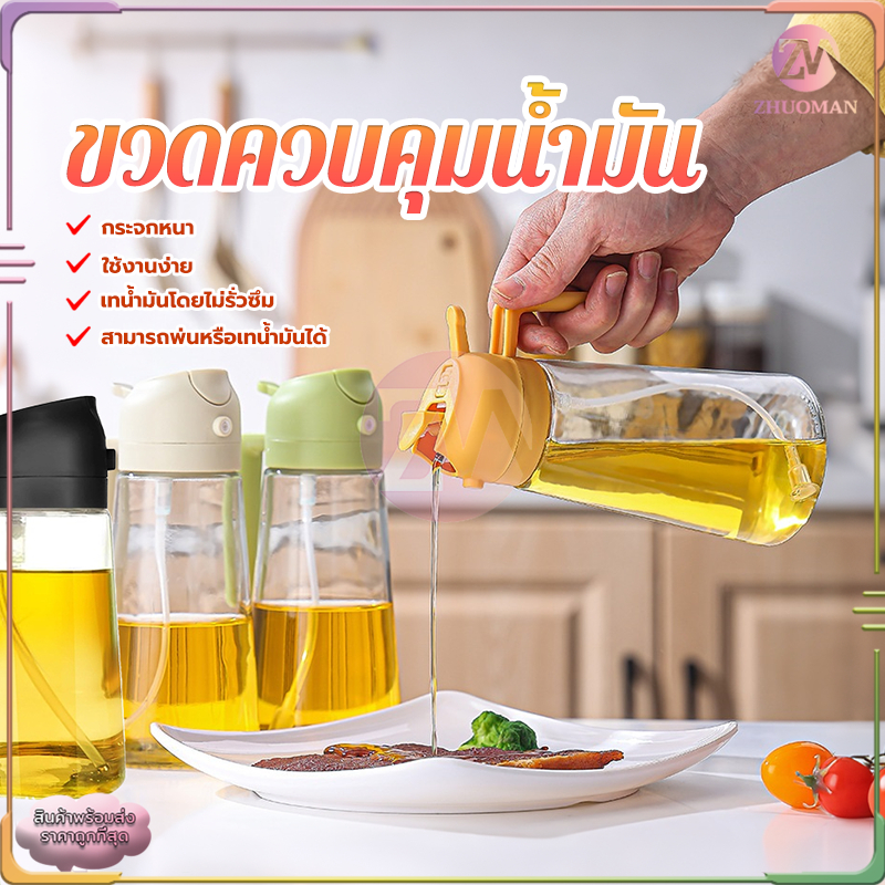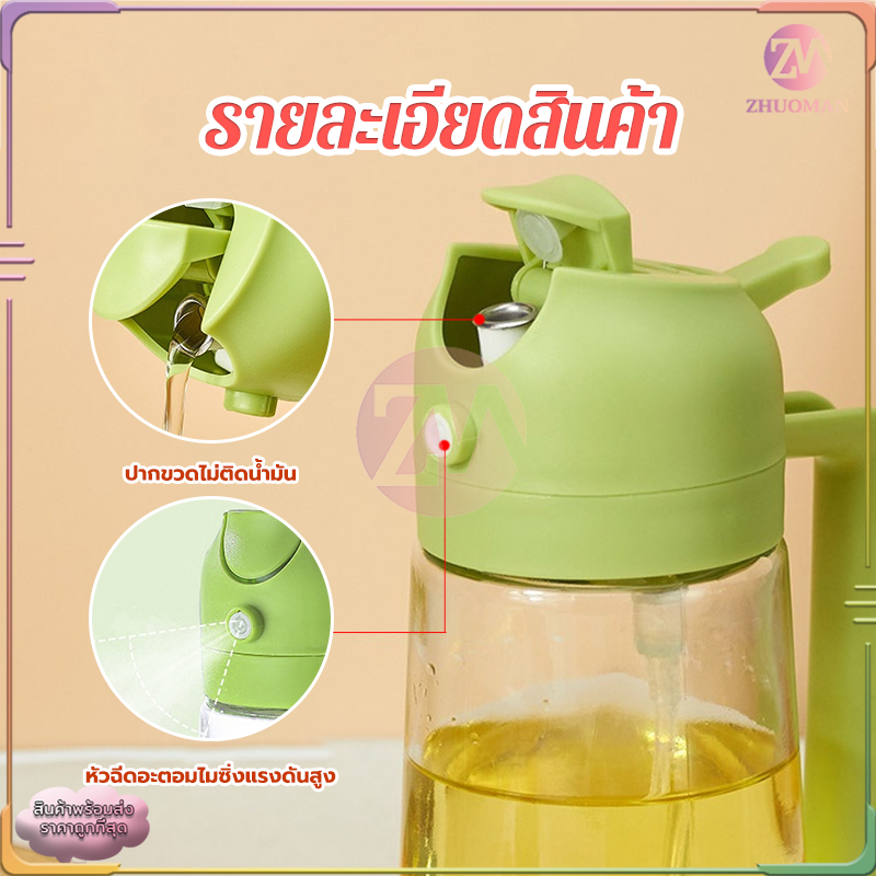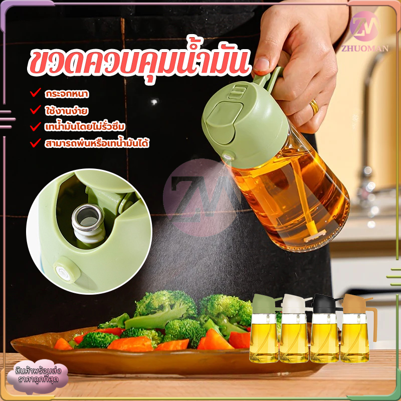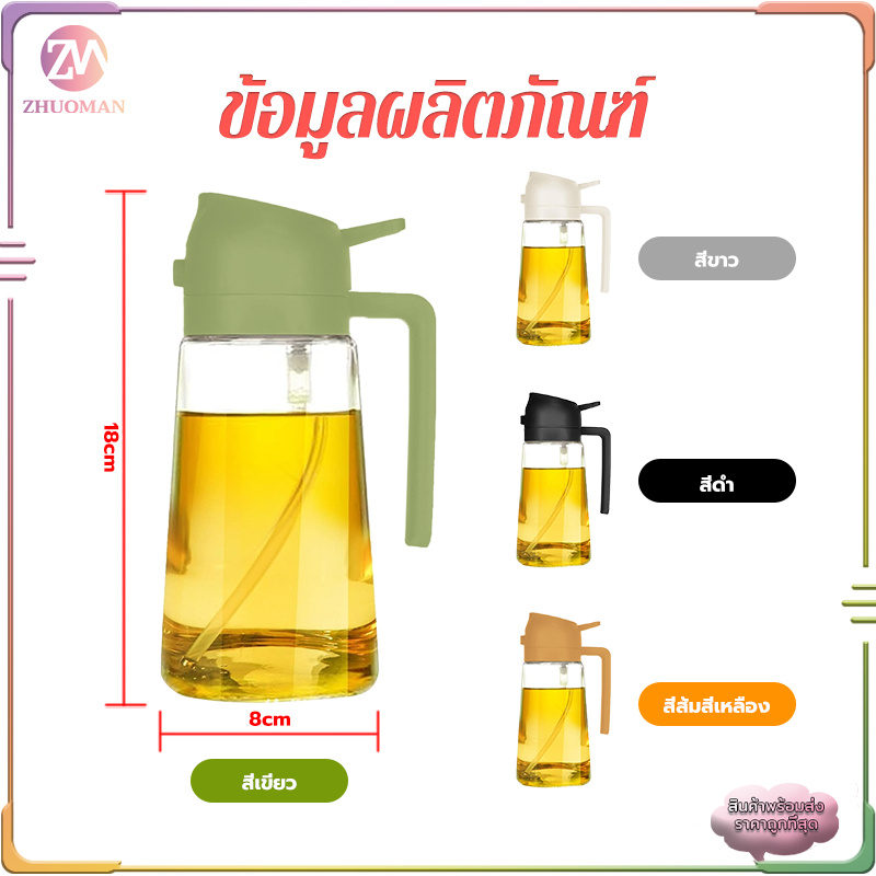 ขวดสเปรย์แก้วใส่น้ำมัน ขวดสำหรับใส่น้ำมัน470MLกันรั่ว ใช้งานได้ 2 ฟังก์ชั่น ฝาเปิดปิดอัตโนมัติ ขวดจ่ายน้ำมัน น้ำส้มสายชู