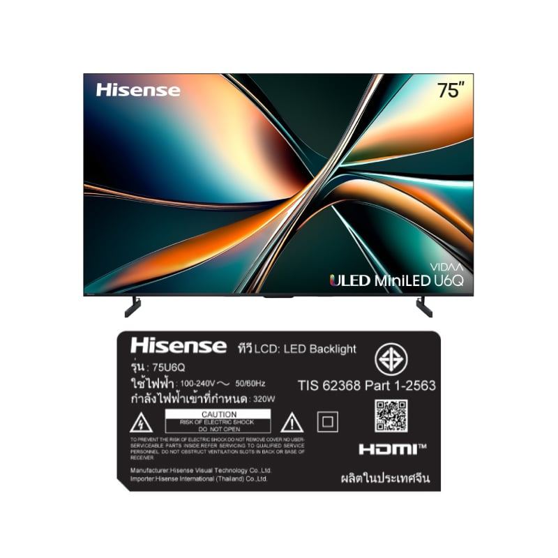 Hisense ทีวี U6Q สมาร์ททีวี 75 นิ้ว 4K VIDAA UHD Mini LED รุ่น 75U6Q ปี 2025