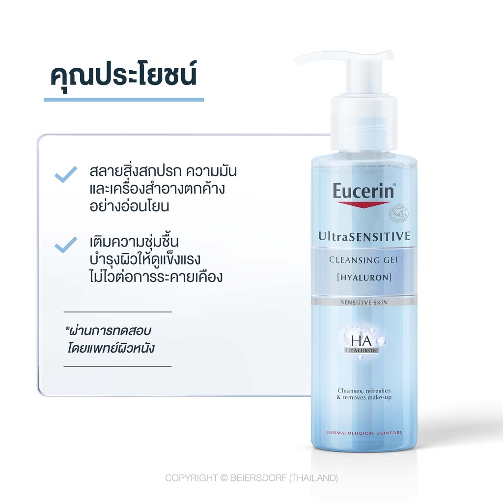 Exp.10/27 Eucerin Ultra SENSITIVE Cleansing Gel Hyaluron 200ml ยูเซอร ิน คลีนซิ่งเจล เจลทำความสะอาด
