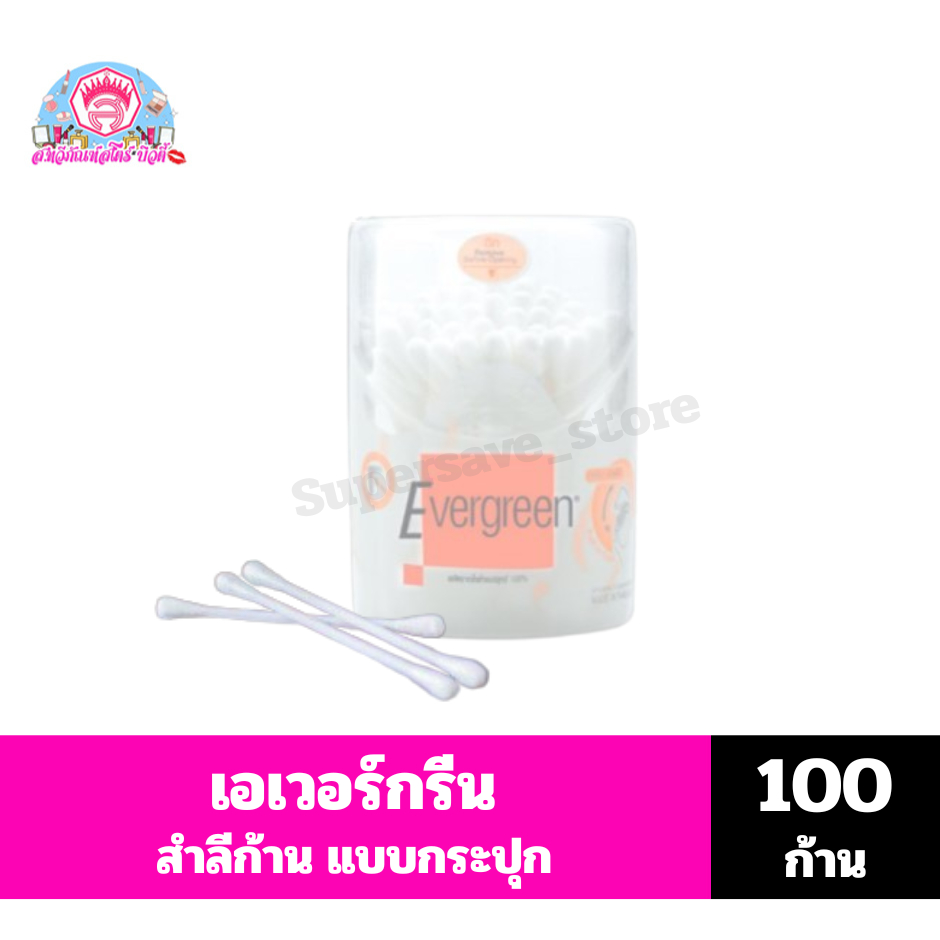 เอเวอร์กรีน สำลีก้าน แบบกระปุก ขนาด 100 ก้าน