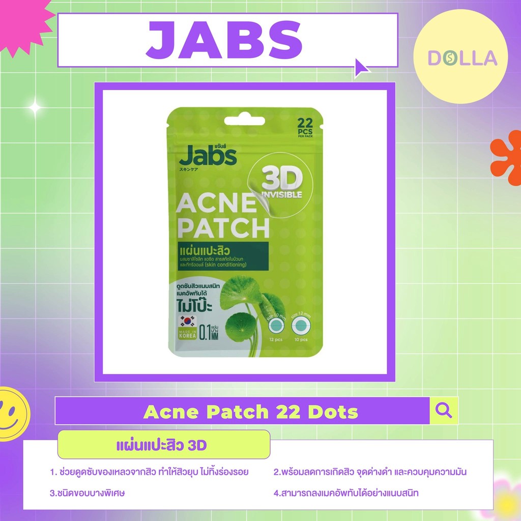 [ซอง] Jabs 3D Invisible Acne Patch 22 Pcs แจ๊บส์ 3D อินวิซิเบิล แอคเน่แพ็ทซ์ แผ่นแปะสิว 22 ชิ้น