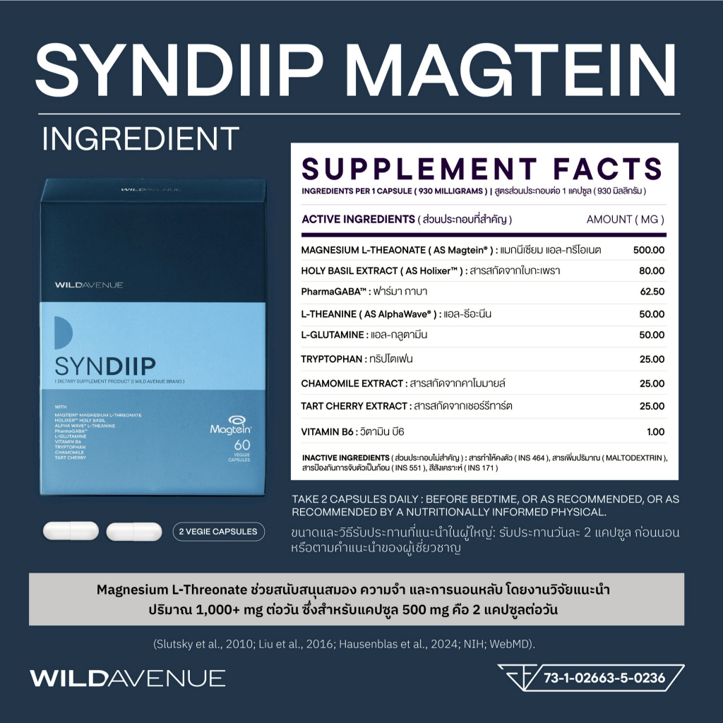WILD AVENUE SYNDIIP (ผลิตภัณฑ์เสริมอาหาร ดูแลการนอนหลับโดยเฉพาะ ซินดิปป์) (60 แคปซูล)