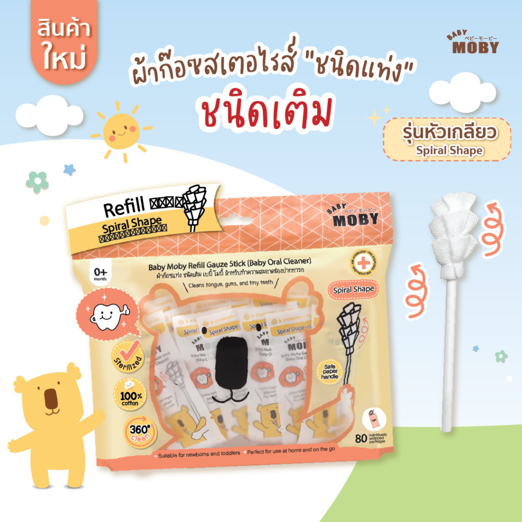 Baby Moby เบบี้ โมบี้ ผ้าก๊อซ ผลิตจากฝ้ายธรรมชาติ 100% ผ้าก๊อซเด็ก ผ้าก๊อซเช็ดลิ้น
