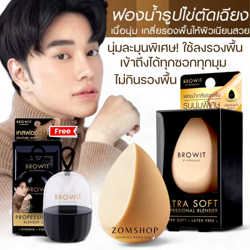【น้องฉัตร】ฟองน้ำเกลี่ยรองพื้น【แถมฟรี !กระปุกเก็บฟองน้ำ】BROWIT ULTRA SOFT PROFESSIONAL BLENDER
