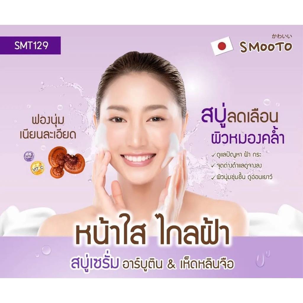 [ยกกล่องX4ซอง]สบู่Smooto Arbutin Melasma Whitening Serum Soap(3666)