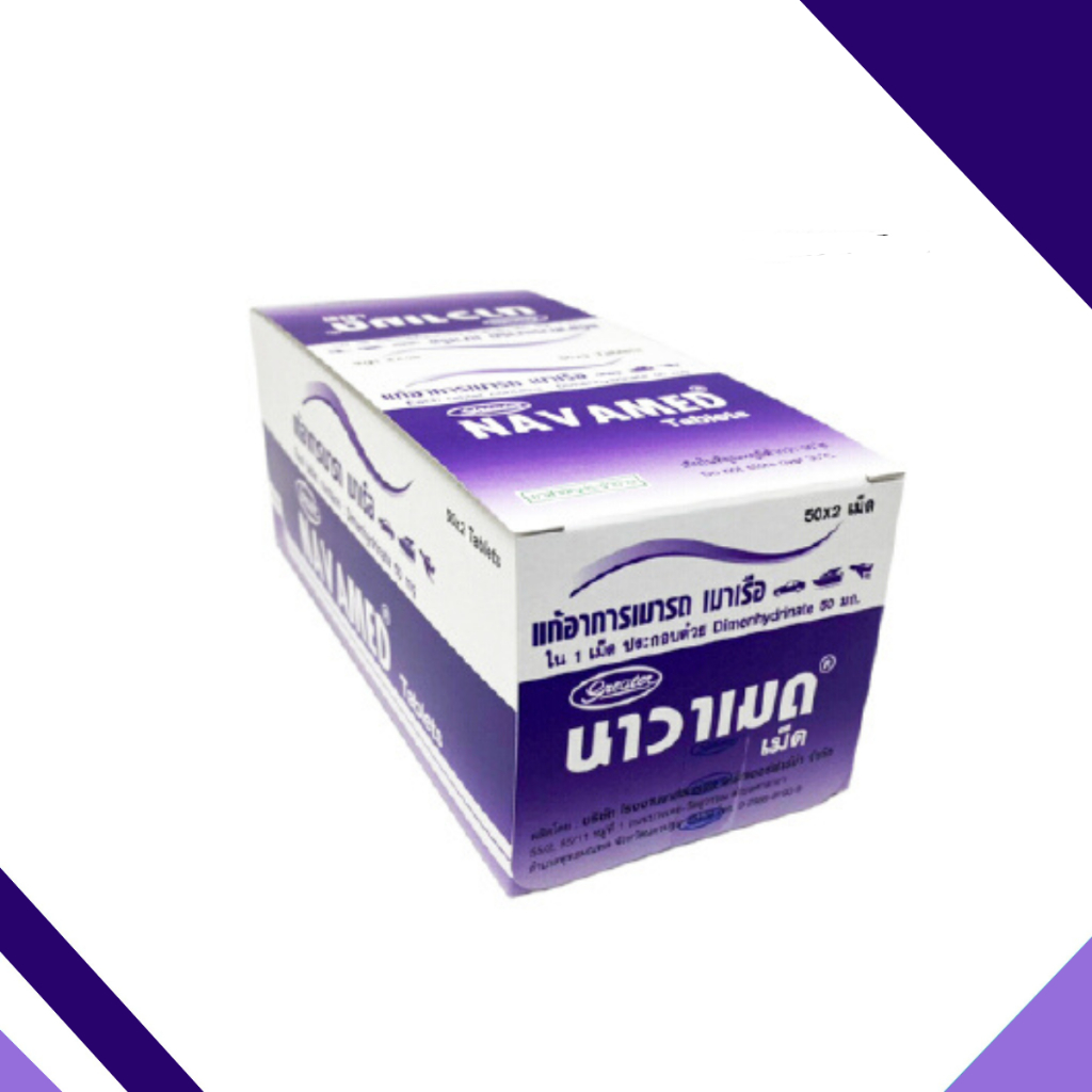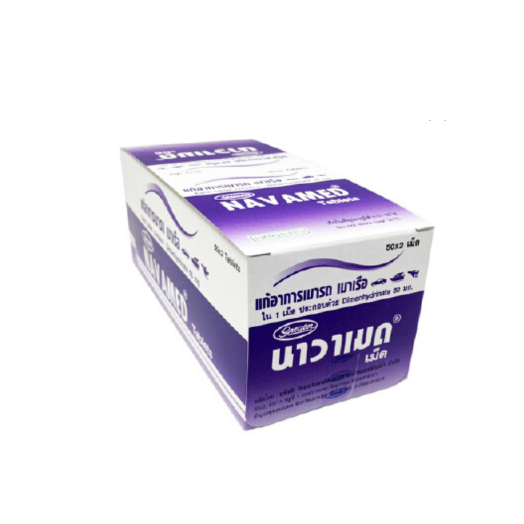 Navamed 50 mg เกร๊ทเตอร์ นาวาเมด 50 มิลลิกรัม แก้เมารถ เมาเรือ 1 กล่อง 16431