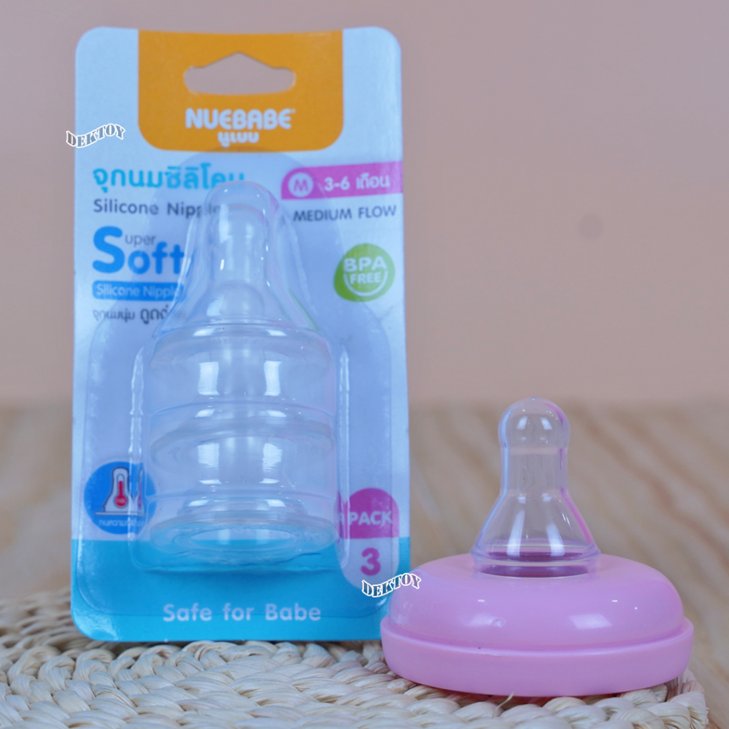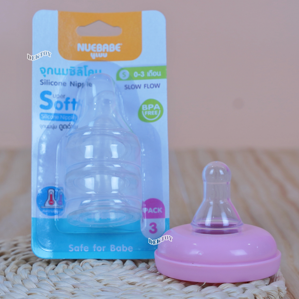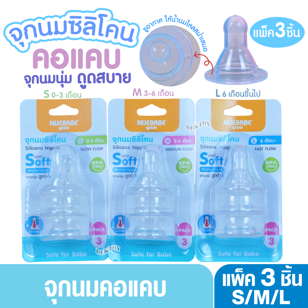 Nuebabe นูเบบ จุกนมซิลิโคน รุ่นจูเนียร์ จุกนุ่ม ดูดง่าย แพ็ก 3 ชิ้น คอแคบ (ไซส์ S ,M ,L)