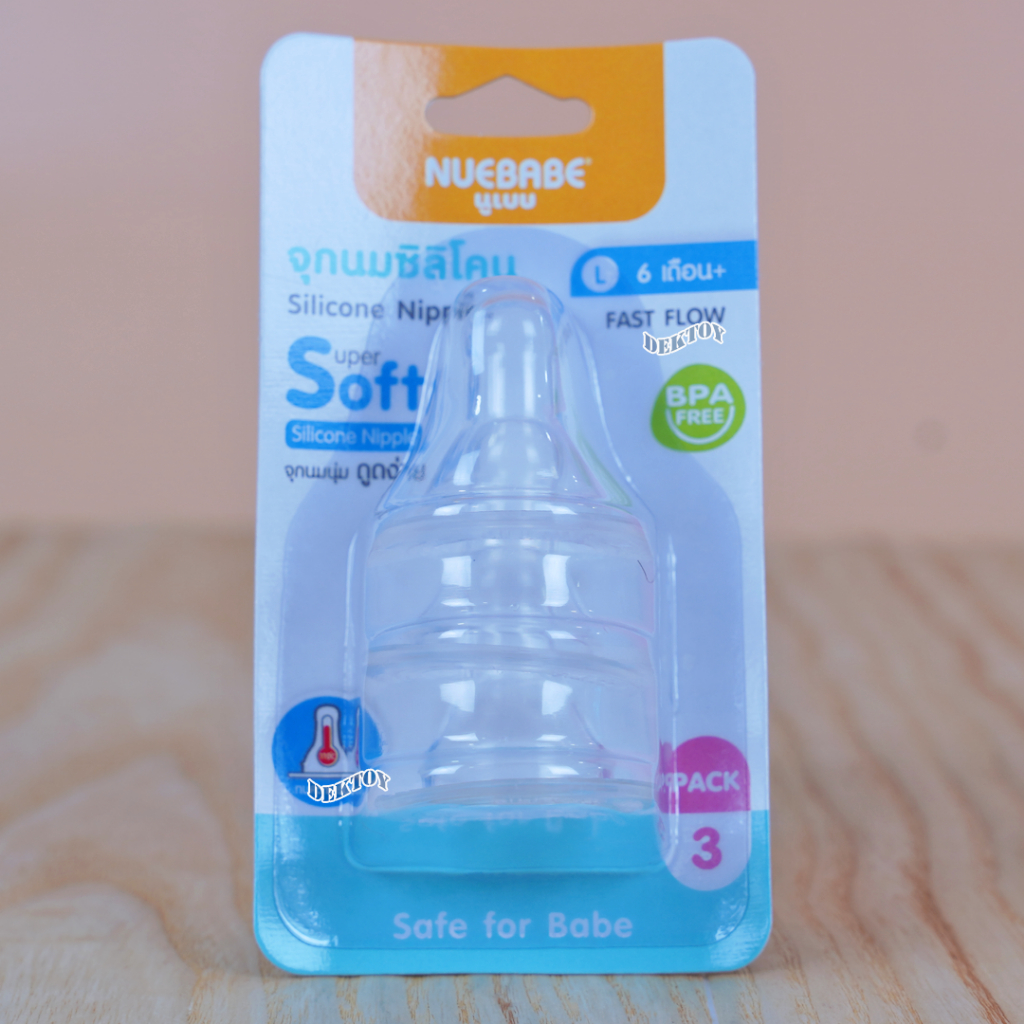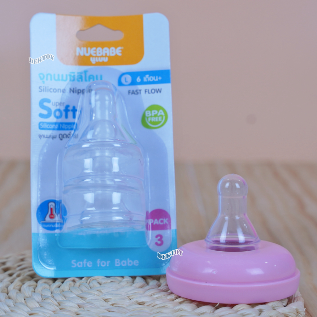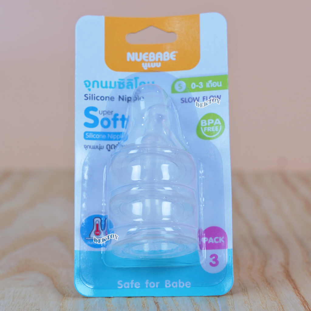 Nuebabe นูเบบ จุกนมซิลิโคน รุ่นจูเนียร์ จุกนุ่ม ดูดง่าย แพ็ก 3 ชิ้น คอแคบ (ไซส์ S ,M ,L)