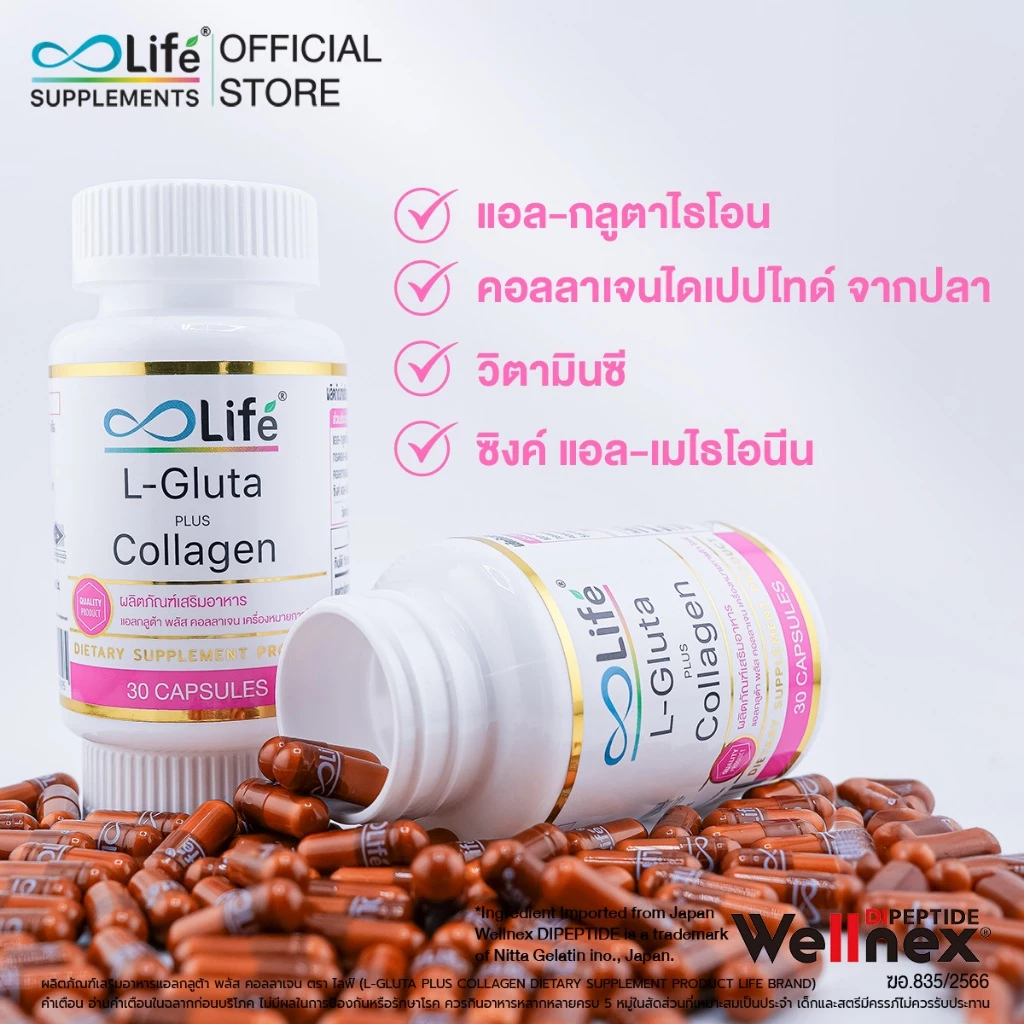 ไลฟ์ แอลกลูต้า พลัส คอลลาเจน 30 แคปซูล / Life L-Gluta Plus Collagen 30 capsule