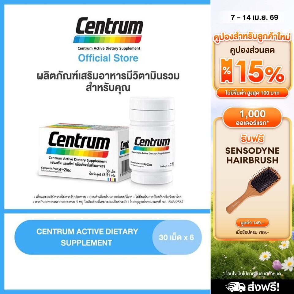 CENTRUM ACTIVE DIETARY SUPPLEMENT 30sx6 เซนทรัม แอคทีฟ ผลิตภัณฑ์เสริมอาหาร วิตามินรวม สำหรับทุกคน 30 เม็ดx6