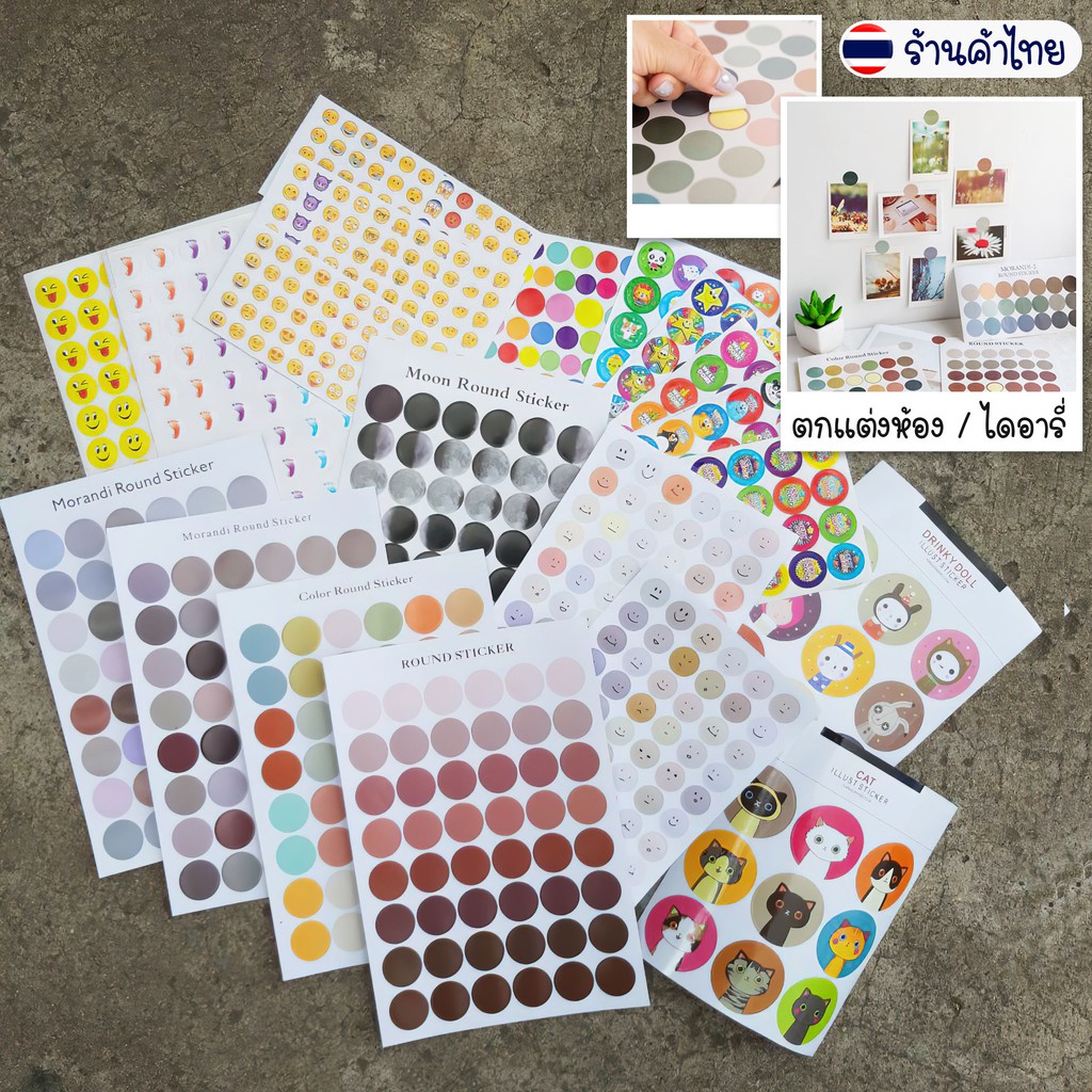 สติ๊กเกอร์วงกลม ไดคัท หน้าอีโมชั่น จุดกลม ตกแต่งไดอารี่ DIY✔️พร้อมส่ง สติกเกอร์ สติ๊กเกอร์เฉดสี