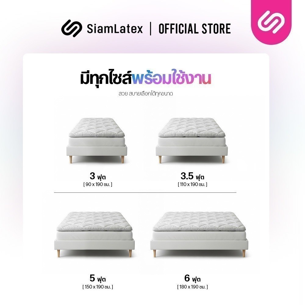 SiamLatex ท็อปเปอร์ยางพารา Original สัมผัสเฟิร์ม ลดปวดหลัง ป้องกันไรฝุ่น ขนาด 3 / 3.5 / 5 / 6 ฟุต