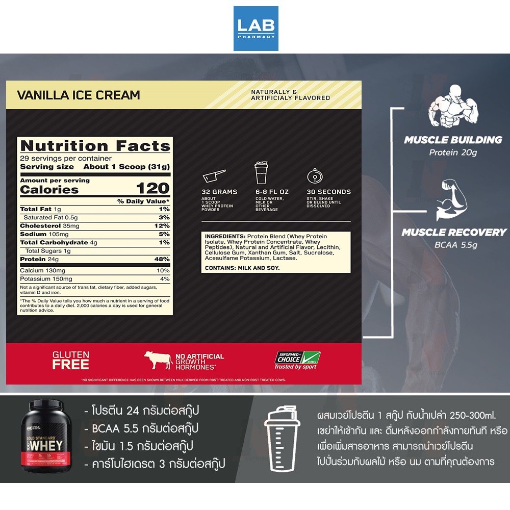Optimum Nutrition Whey Gold Standard 2 lb - Vanilla ice cream เวย์โปรตีนสร้างกล้ามเนื้อ