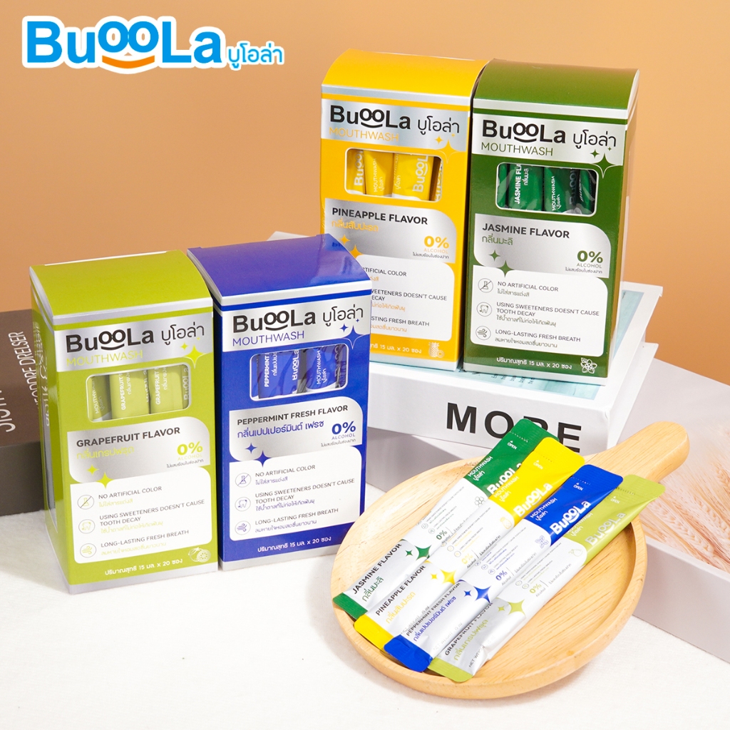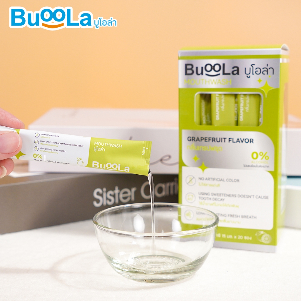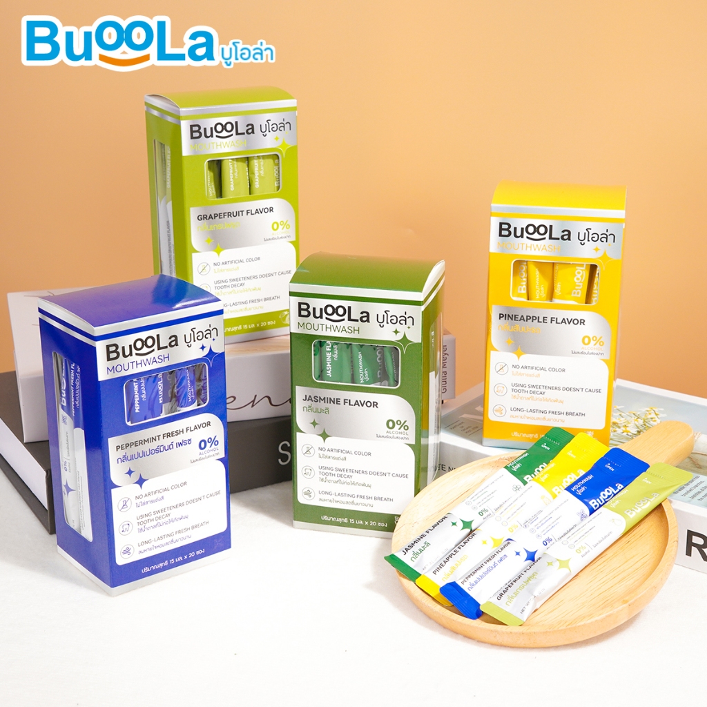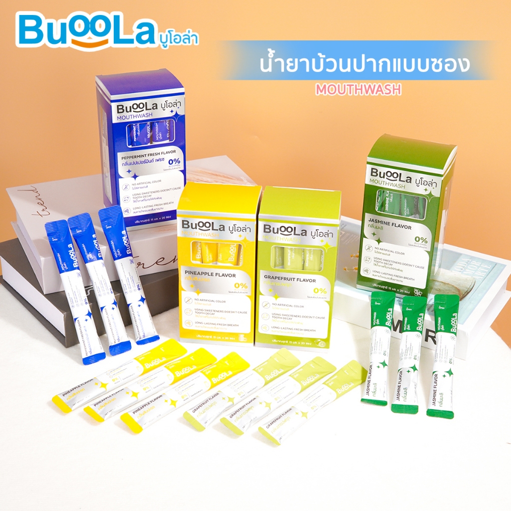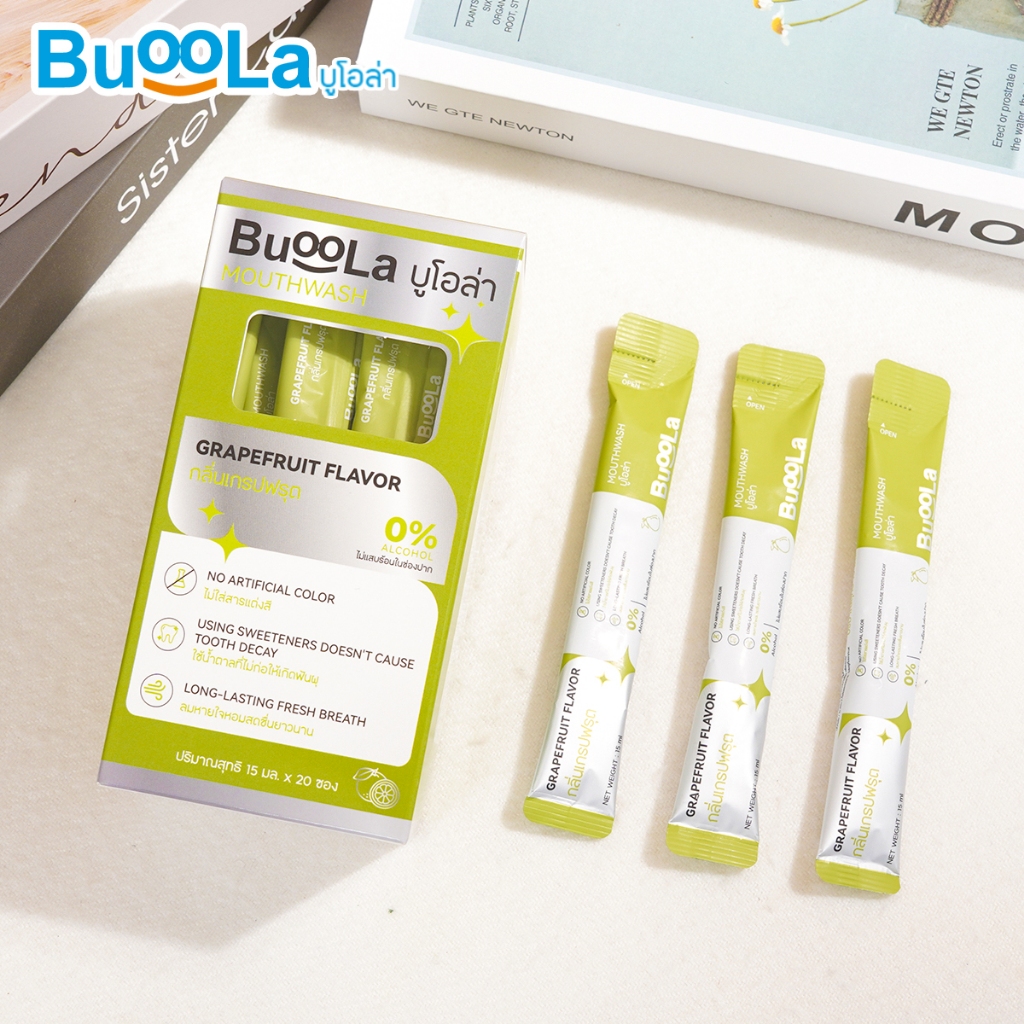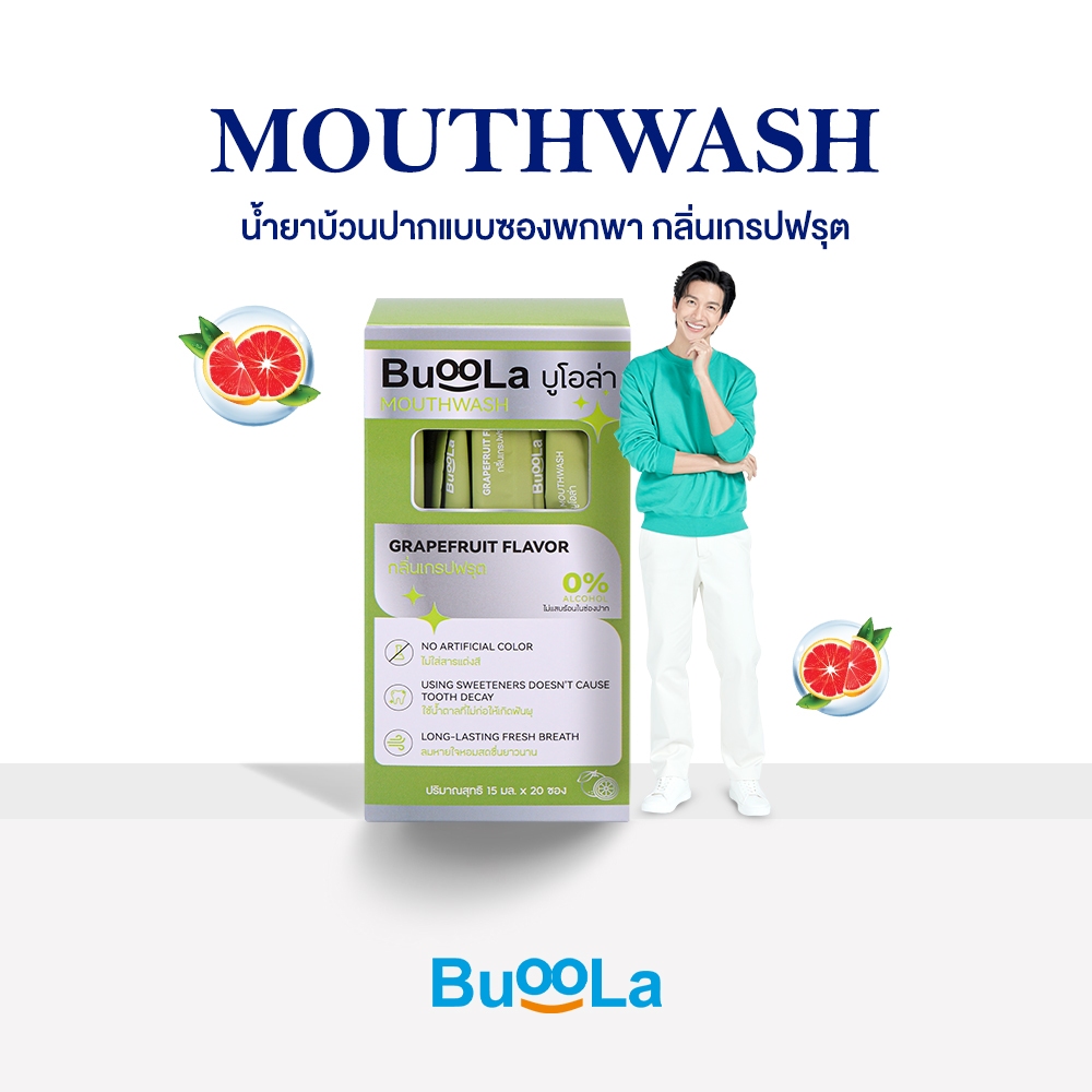 [แบบซองพกพา 1 กล่อง 20 ซอง] Buoola น้ำยาบ้วนปาก (กลิ่นเกรปฟรุต) ช่วยให้ปากหอม สะอาด ลดกลิ่นปาก