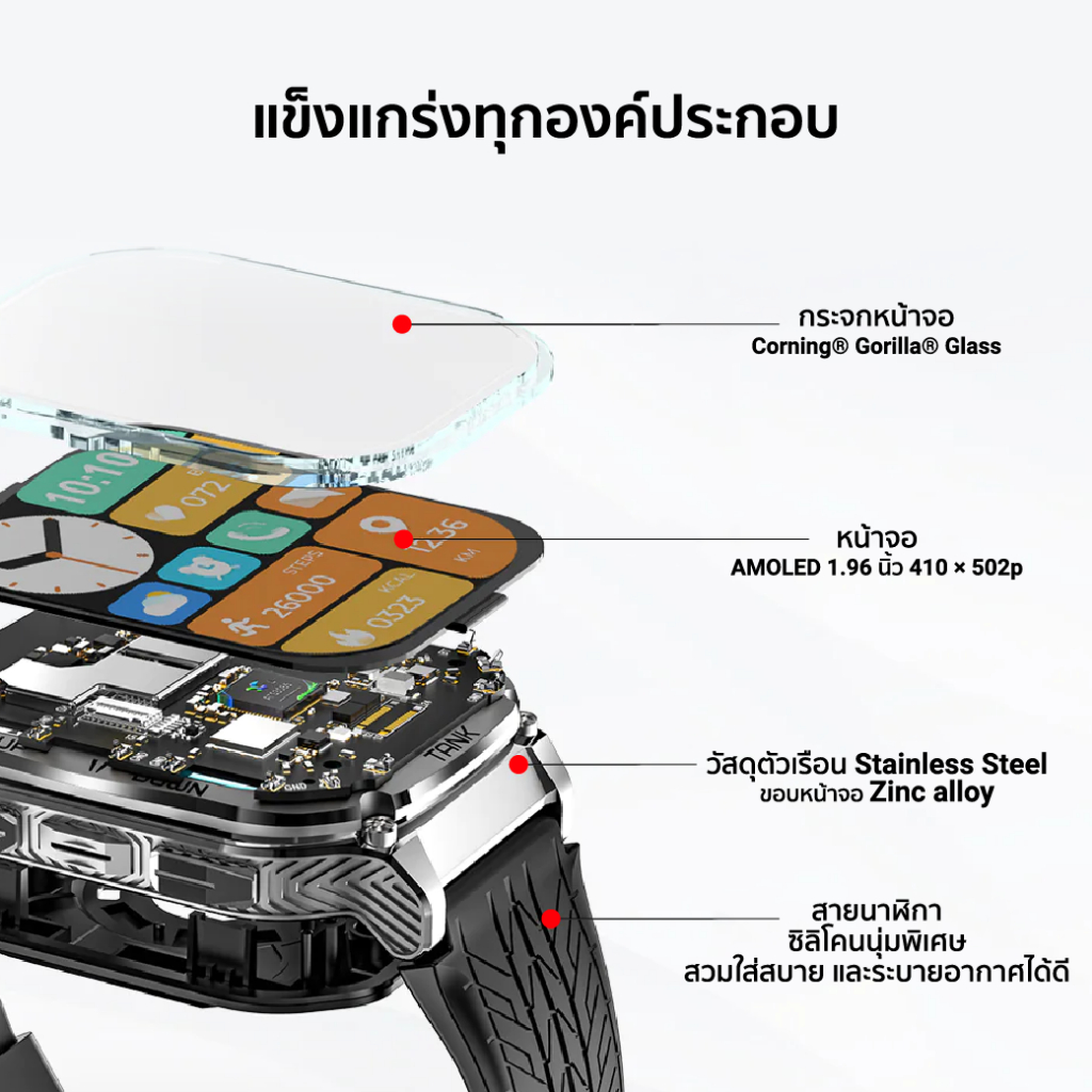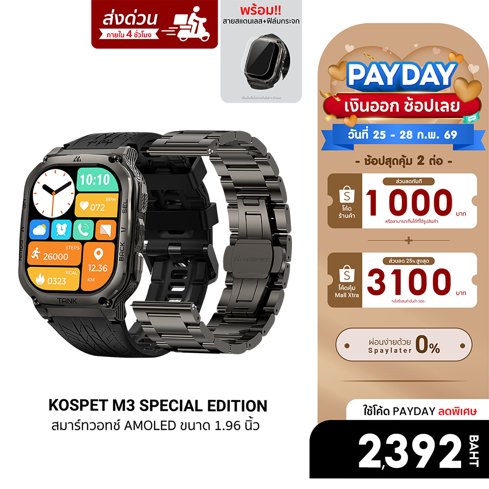 [ลดเหลือ 2392] KOSPET TANK M3 Special Edition สมาร์ทวอทช์ Bluetooth Calling หน้าจอ AMOLED 1.96 นิ้ว กันน้ำ 5 ATM -12M