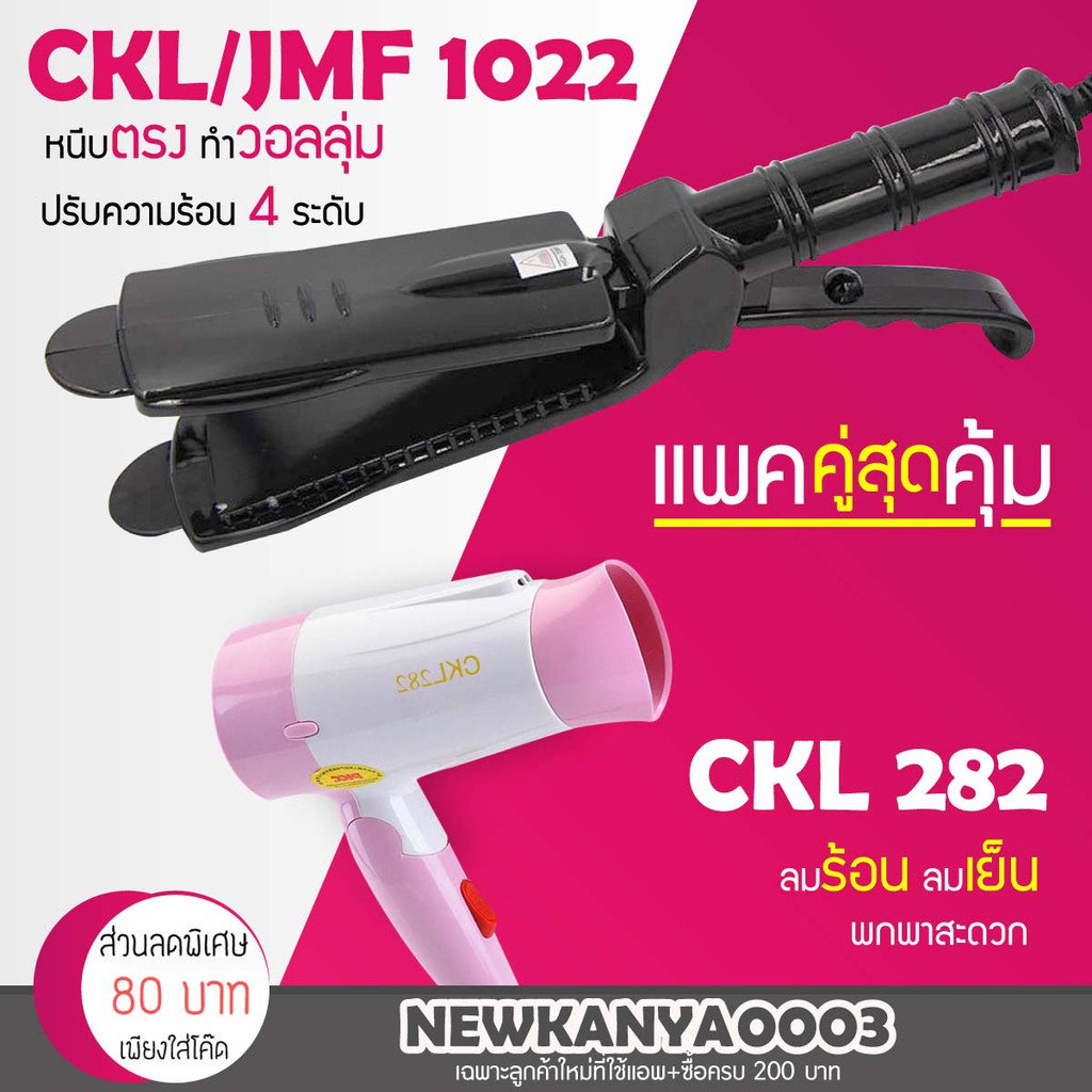 LIC 🔥 แพ็คคู่สุดคุ้ม 🔥 เครื่องหนีบผม CKL / JMF 1022 ที่หนีบผม หนีบตรง หนีบเงา+ไดร์เป่าผม ที่เป่าผม เครื่องเป่าผม CKL 282