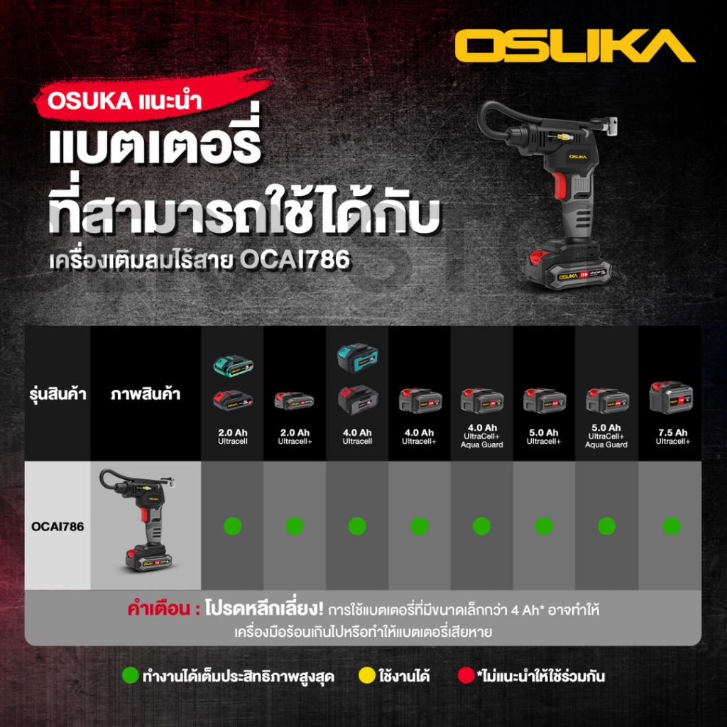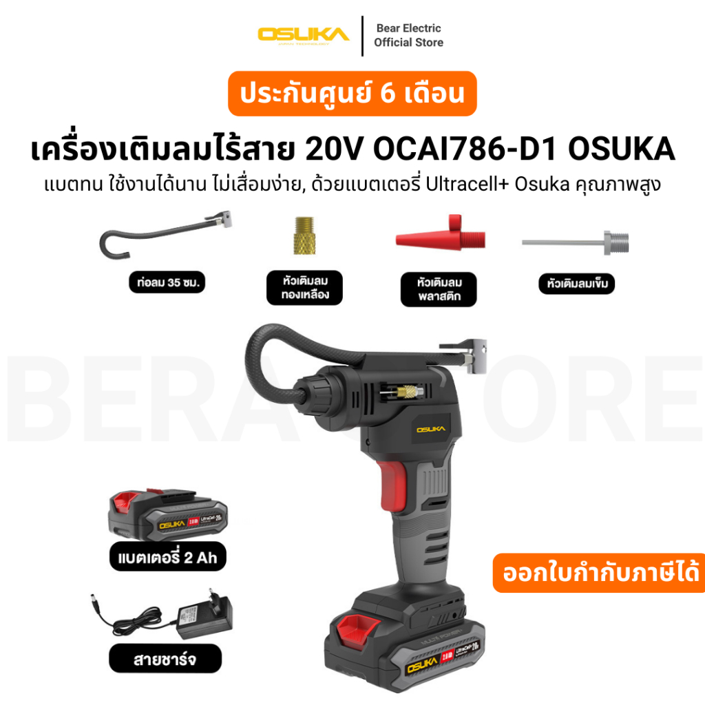 เครื่องเติมลมไร้สาย 20V OCAI786-D1 OSUKA รับประกัน 6 เดือน
