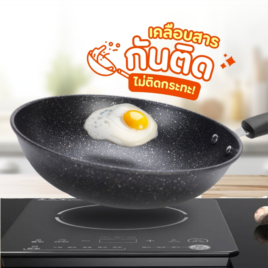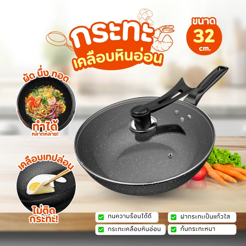 พร้อมส่ง กระทะเคลือบหินอ่อน กระทะไฟฟ้า ทรงลึก 32 cm พร้อมฝากระทะ ใช้กับเตาแม่เหล็กไฟฟ้าได้ กระทะ ฝากระทะ กระทะเทปล่อน